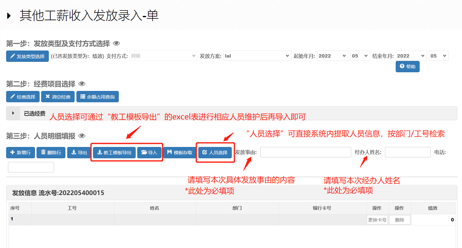 校内人员”其他工薪收入申报如下图: