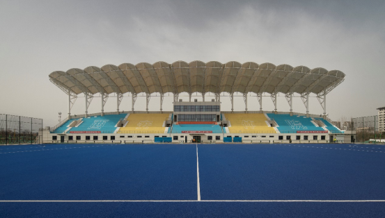 西安体育学院鄠邑校区,赛场拥有3块标准场地,1块为主场地,另2块为比赛热身和训练场地,每块场地长和宽分别为91.4米和55米。场馆分为地上两层,总座位数3096个,总高15.95m。场馆功能设施先进,夜间照明条件良好,具备承接国际国内大型曲棍球赛事的优越条件。中华人民共和国第十四届全国运动会棒球项目,将于2021年9月14日-9月25日在西安体育学院鄠邑校区棒球场开赛。