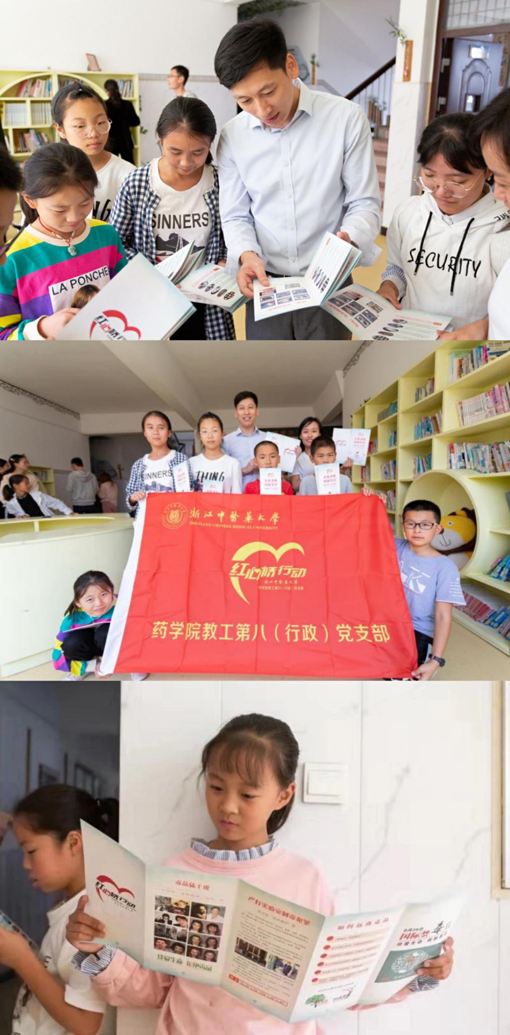 捐赠仪式上,彭建华和胡一平为该校学生送上《中医药与健康》等书籍。胡一平向大家介绍了由药学院教工第八党支部发起的“红心桥微心愿”关爱困难群体、传递大温暖、传播正能量、扶贫与扶志结合的理念和宗旨。彭建华表示,浙江中医药大学两个教工党支部将与大盘中心校组织开展“红心桥微心愿”志愿活动,届时将为百名学子圆梦!