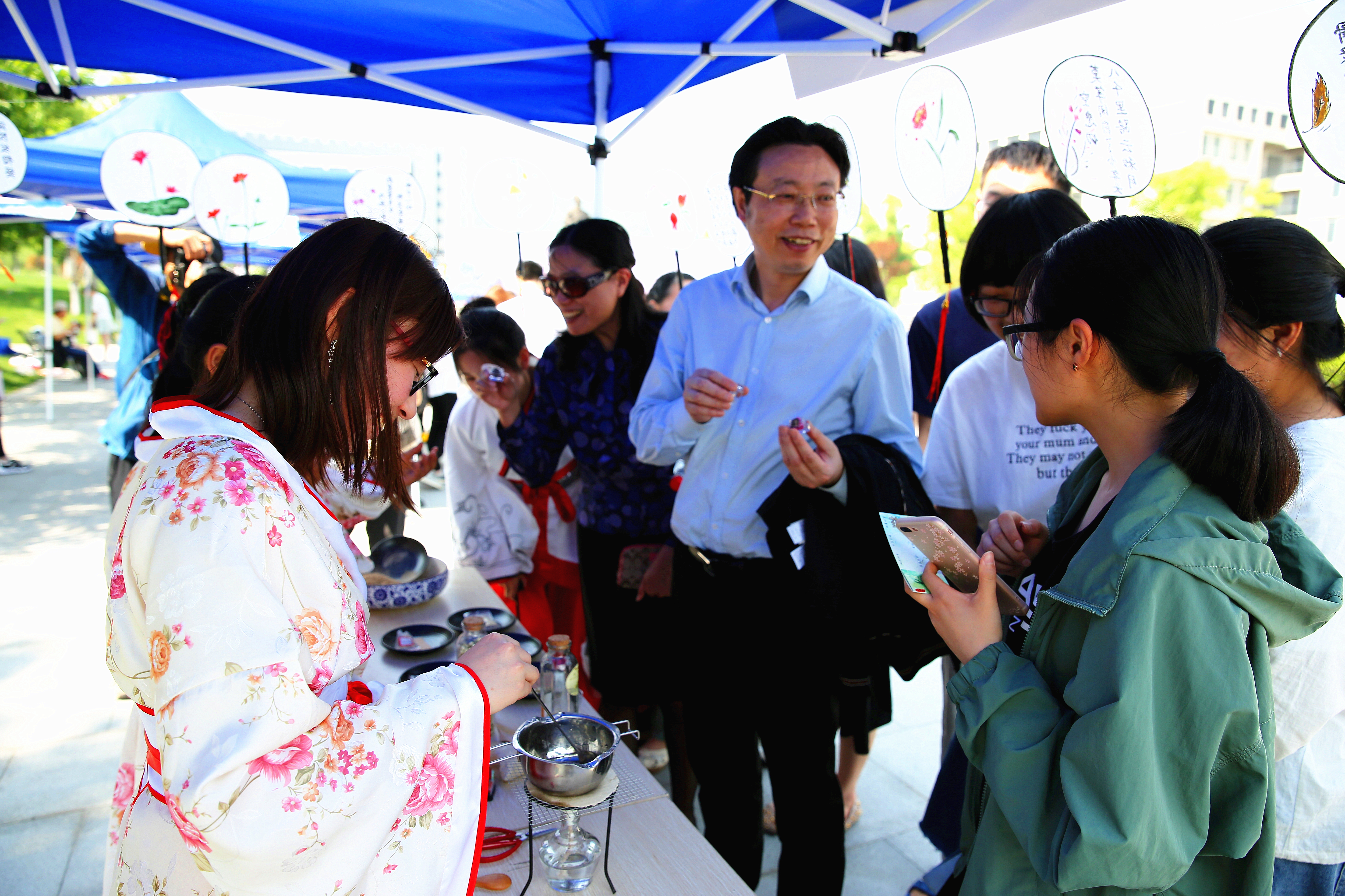 主会场活动分为闯关区、互动区、标本区,共八大项目。时珍论药、辩药快手、千药百味、锦囊妙鉴、承茶问道、药染风华、古韵凝香、本草拾趣,每一个项目都受到了同学们的热烈欢迎。以李时珍生平事迹为背景的中药知识问答、通过饮片辨认中药、制作香囊、茶道表演、中草药扎染、蜜炼香丸、缝制标本,这些生动有趣的中医药传统文化体验感知活动,吸引了大学生的广泛参与。