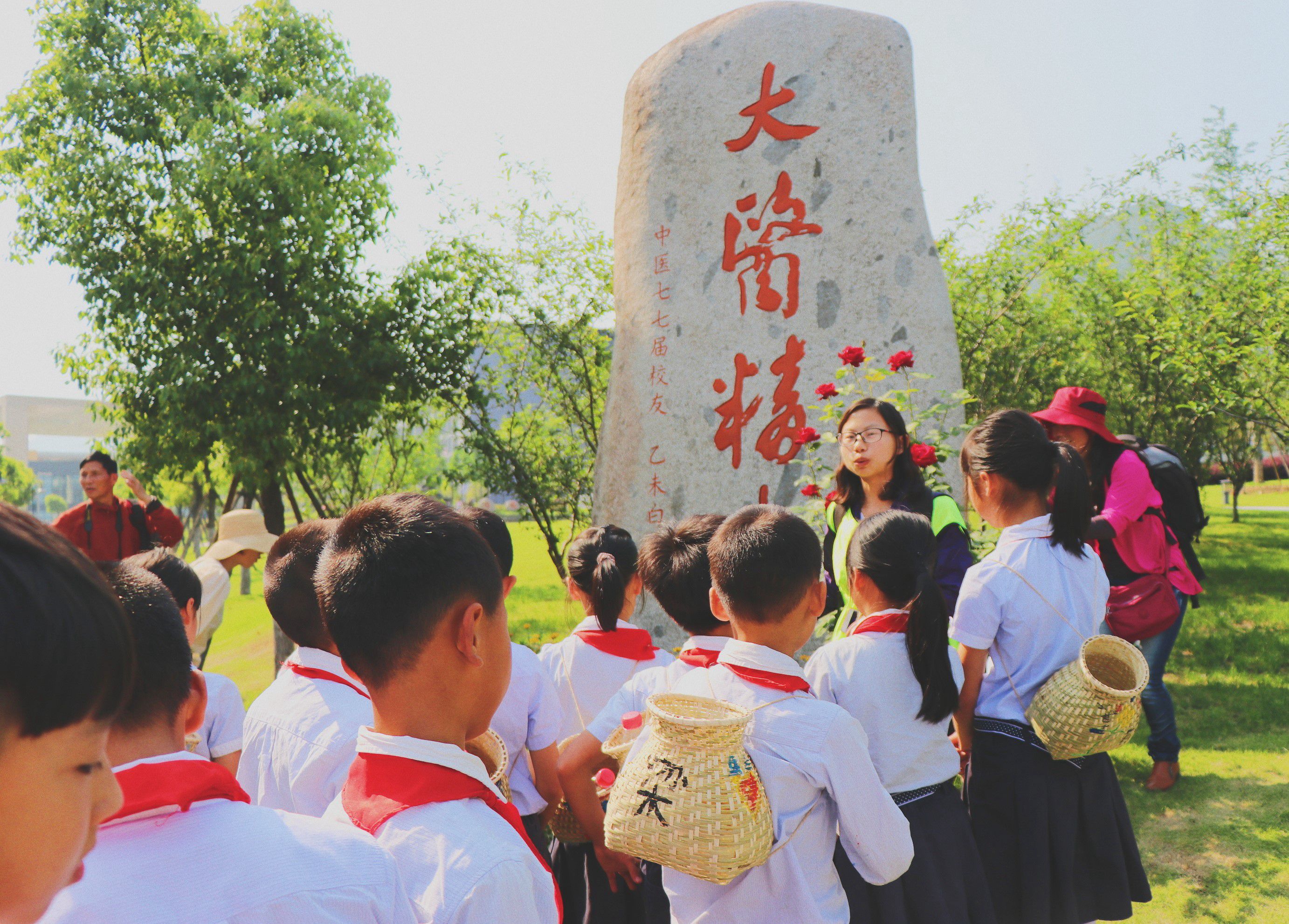 分会场分为时珍课堂、踏春寻药两个项目。时珍课堂迎来了富阳三桥小学四年级的42名小学生,由药学院本草社和青年志愿者协会的大学生们为他们带来一堂别样的中医药文化体验课程。每位小朋友都收到了一只小药篓,在志愿者的指导下,孩子们发挥想象,绘制出自己独一无二的药篓。随后,志愿者分组带领孩子们在校园内开启了认药采药之旅。踏春寻药则是药学院研究生的学术文化活动,通过户外识药和室内认药两大板块,来学习、认识身边的中草药和中药饮片,为同学们带来一场专业的趣味讲座。