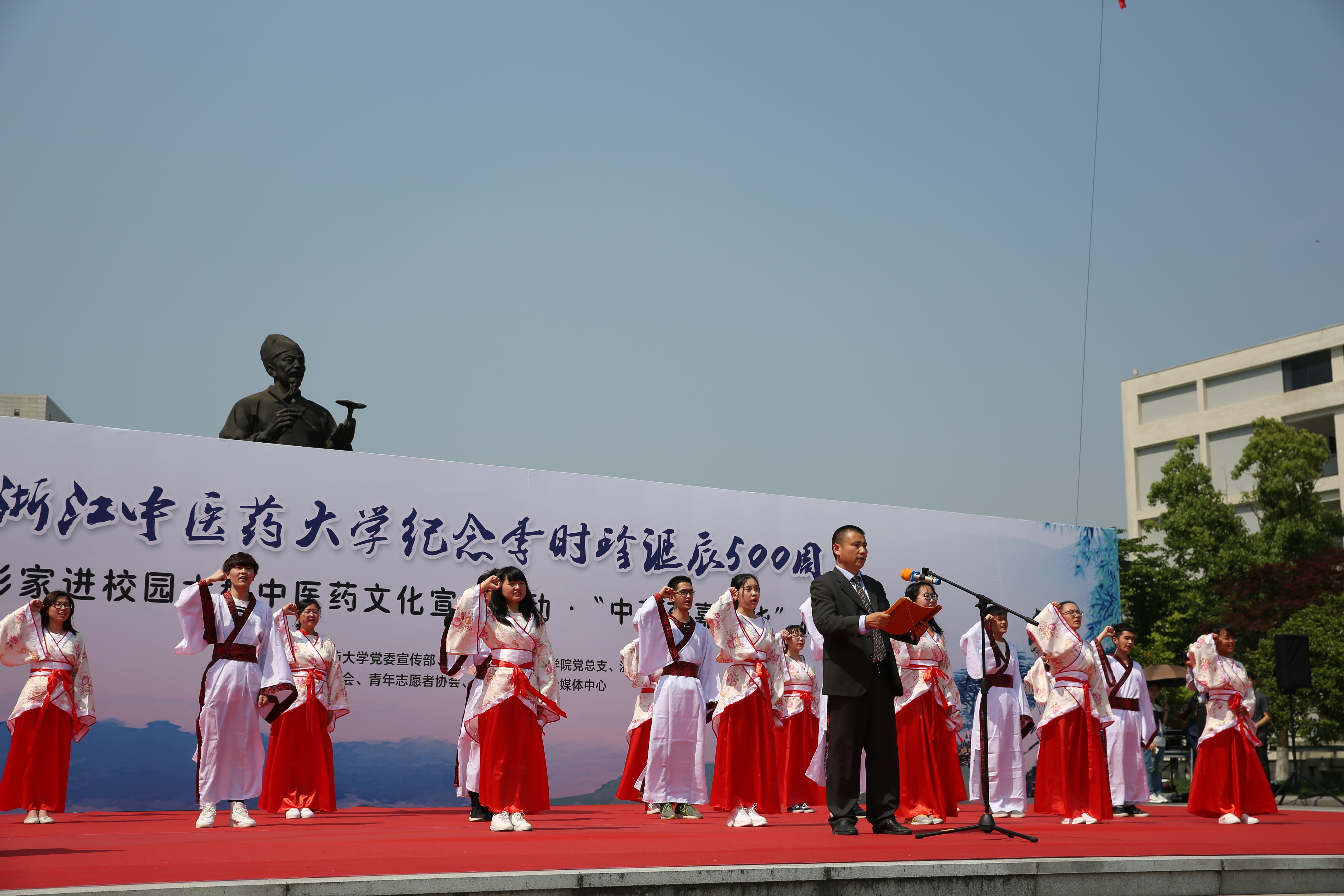 2018年正值“药圣”李时珍诞辰500周年,也恰逢我校中医药文化传承实践类品牌活动——“中草药嘉年华”践行10周年,为纪念和弘扬李时珍精神,宣传普及中医药文化,浙江中医药大学纪念李时珍诞辰500周年暨摄影家进校园大型中医药文化宣传活动·中草药嘉年华校园旗舰站于5月9日下午在富春校区时珍广场拉开帷幕。