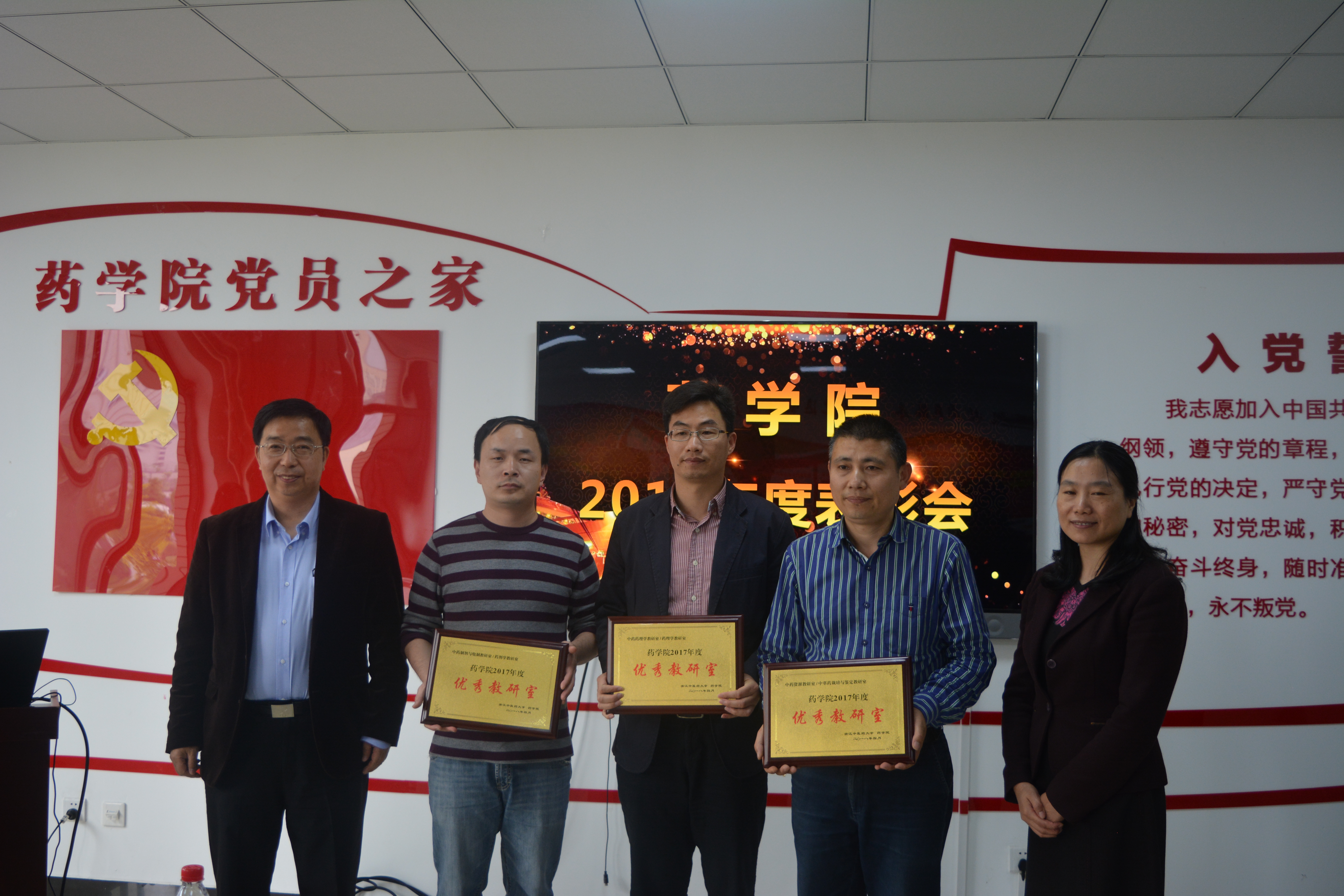 石森林副院长在会上宣读了获得省级、校级和院级的各类先进个人和先进集体,学院院长秦路平和总支书记徐爱琴为获得“药学院2017年度优秀教研室”和“药学院2017年度工作先进个人”的先进集体和个人颁发了证书。会议号召全院教职工在新的一年里,以受表彰的集体和个人为榜样,聚焦省重点高校和省部共建目标和2018年重点工作任务,全力推动学院在新时代奋力谱写浙江中医药大学药学院的美好新篇章!(吴杭城)