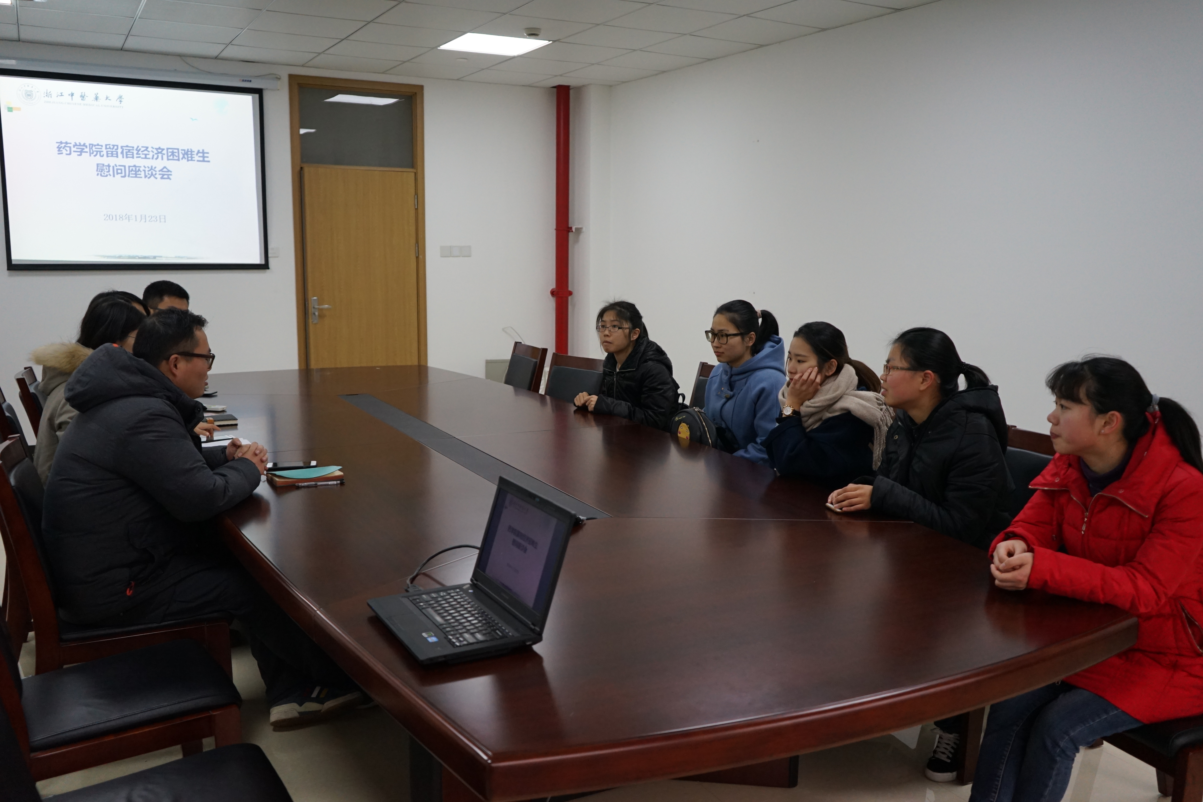 寒假将至,1月23日上午九点,药学院寒假留宿学生慰问座谈会在富春校区举行,药学院学工办主任曹俊老师出席并讲话,会议由药学院资助工作负责人周洁老师主持。
