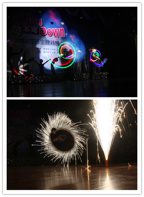 迎新晚会在动脉血乐队振奋人心的鼓声中正式拉开了帷幕。男主唱的一首《开到荼靡》一开嗓就轰动了全场。那富有磁性的声音、深情的演绎感染了现场的每一位观众。13级新生们带来的街舞《show time》也毫不逊色,青春热辣的舞姿,一出场就赢得了满堂喝彩,随后的机械舞更是以其高超的舞技迅速将晚会带入第一个高潮。而紧接着的阿卡贝拉《moves like jagger》,将每一位演唱者的嗓音完美融合在一起,出色的配合与演唱技巧,令观众们赞叹不已。