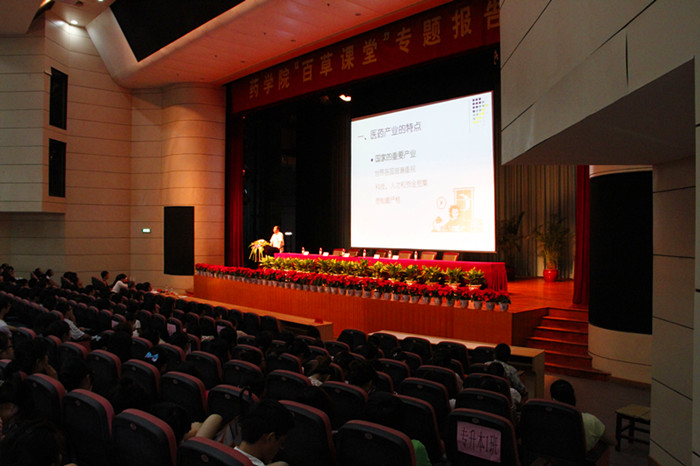 9月14号下午,浙江省食品药品监督管理局注册处苏志良处长作为药学院“百草课堂”的特邀嘉宾,为学院全体新生作了一场主题为“医药类学生的未来在哪里?”的精彩报告。药学院全体领导班子出席了本次活动,会议由学院党总支副书记梁泽华主持。