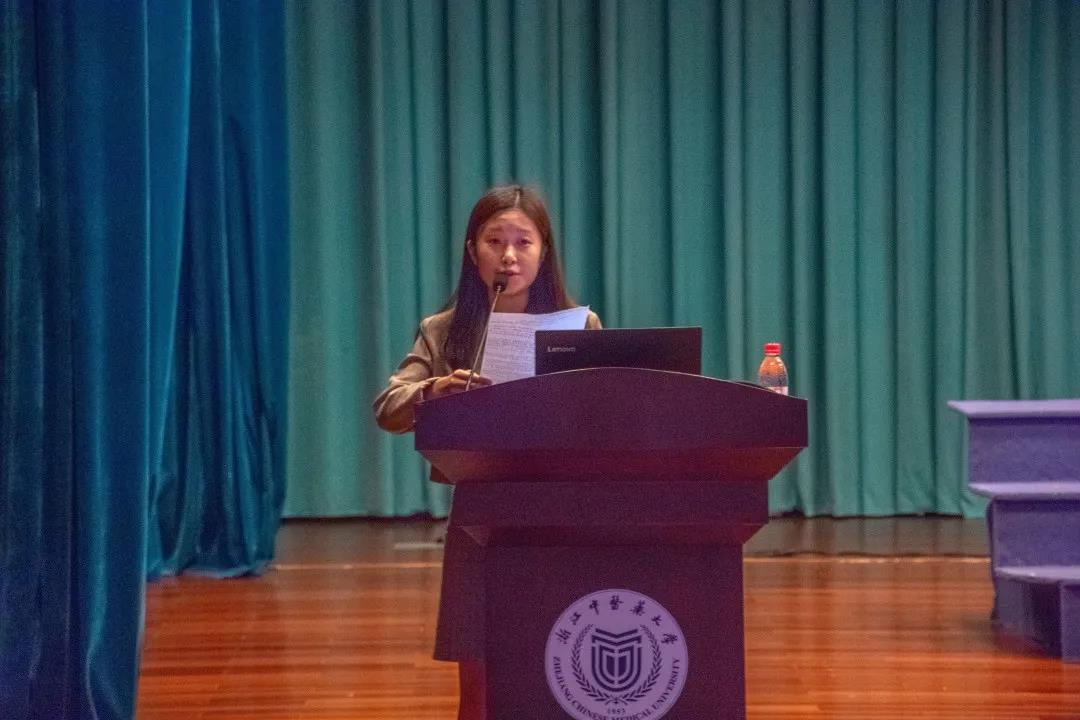 药学院学生会主席团孙巧仪同学作为老生代表发言。她代表药学院全体同学对2021级的新同学们致以最热烈的欢迎和最真诚的问候,并希望学弟学妹在接下来的四年里,选择正确的学习态度,选择昂扬的生活态度,努力成为更加优秀的自己,成为新时代强国梦的建设者,发出“请党放心,强国有我!”的新时代呐喊。