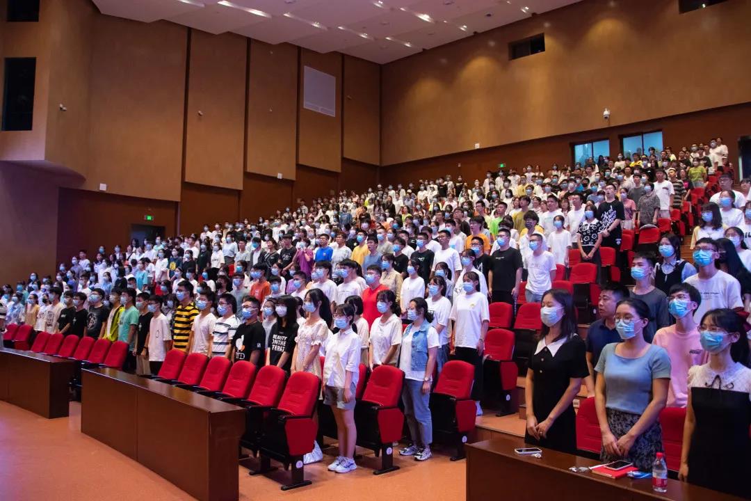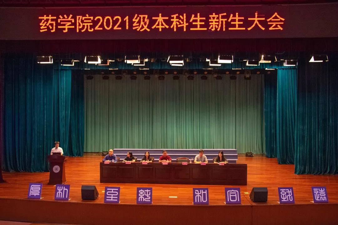 9月23日下午,药学院在富春校区剧场召开2021级本科生新生大会,药学院院长秦路平、党委书记谢军、副书记蒋笑燕、副院长赵华军出席大会。学院各所室负责人、班主任、辅导员老师们及全体2021级新生参加了本次大会。新生大会在全体师生合唱国歌的庄严氛围中开始。