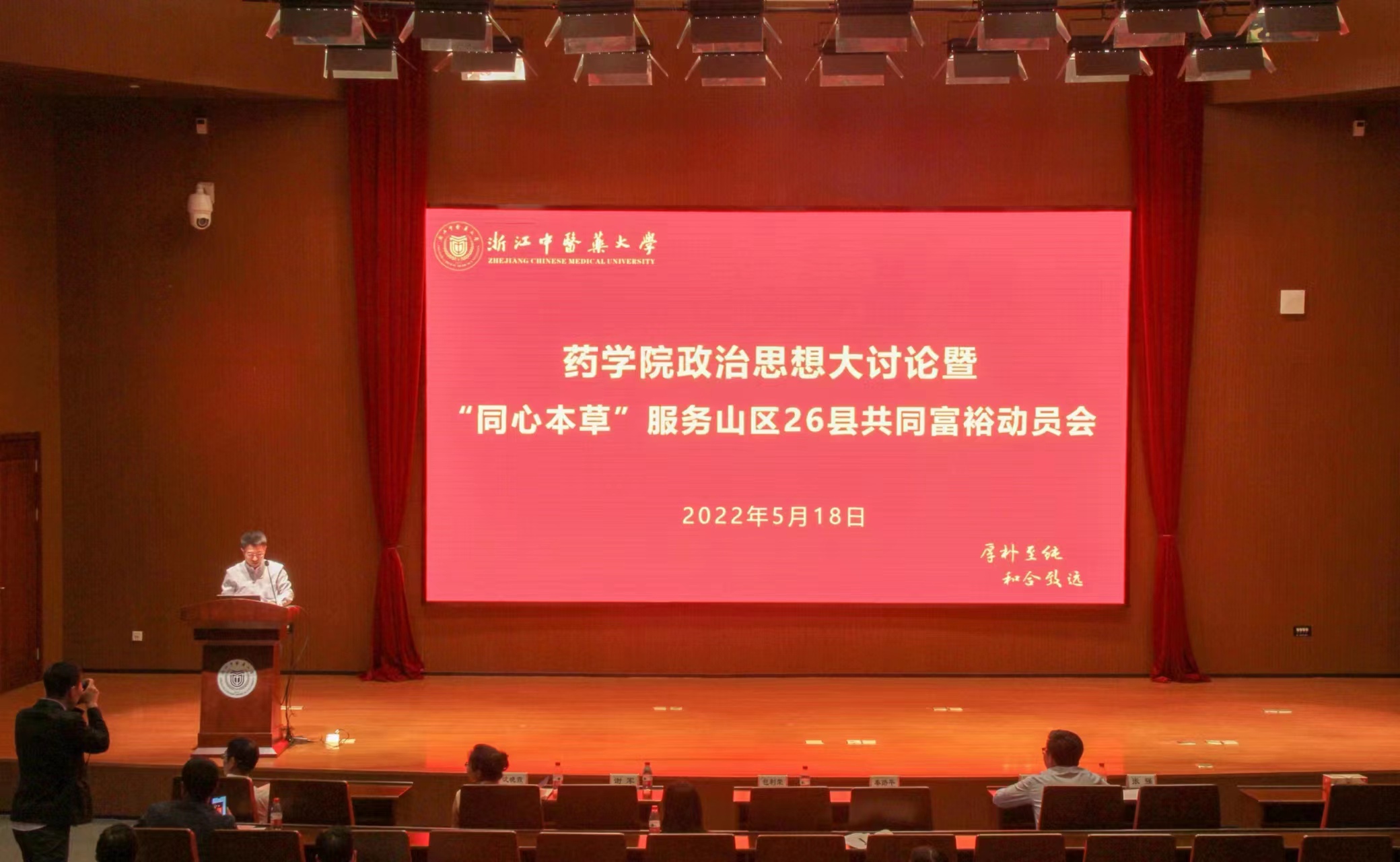 为全面贯彻习近平总书记关于教育、中医药的重要论述,以及区域协调发展系列重要讲话精神,落实省委袁家军书记调研我校时作出的指示要求,进一步统一思想、凝聚共识、汇聚力量,争当助力共同富裕示范区建设的生力军,以一流社会服务推进一流中医药大学建设步伐。5月18日下午,药学院召开全院教职工大会,就政治思想大讨论暨服务山区26县共同富裕进行动员部署。学院党委书记谢军作动员讲话,院长秦路平作助力共同富裕专题报告。