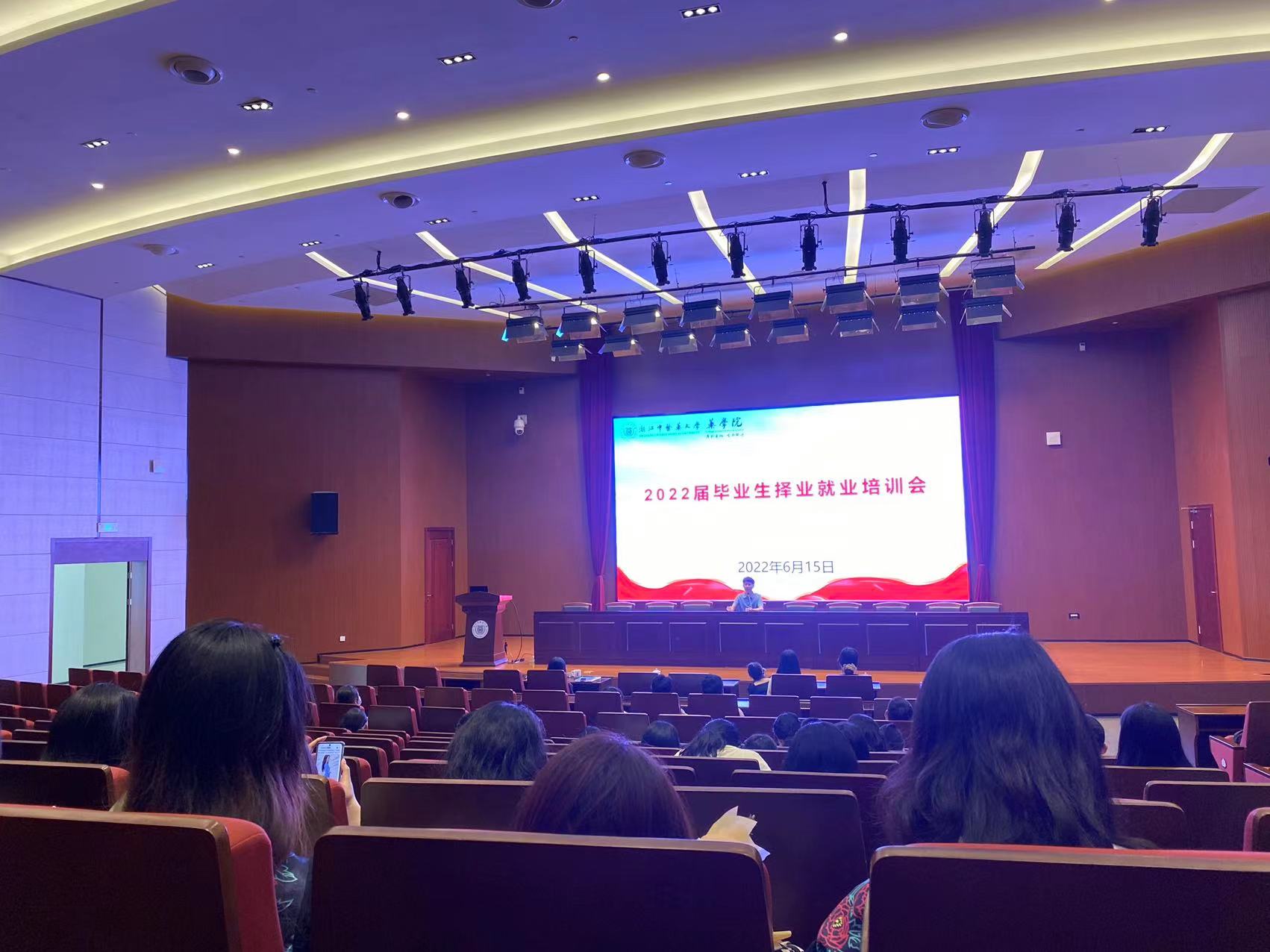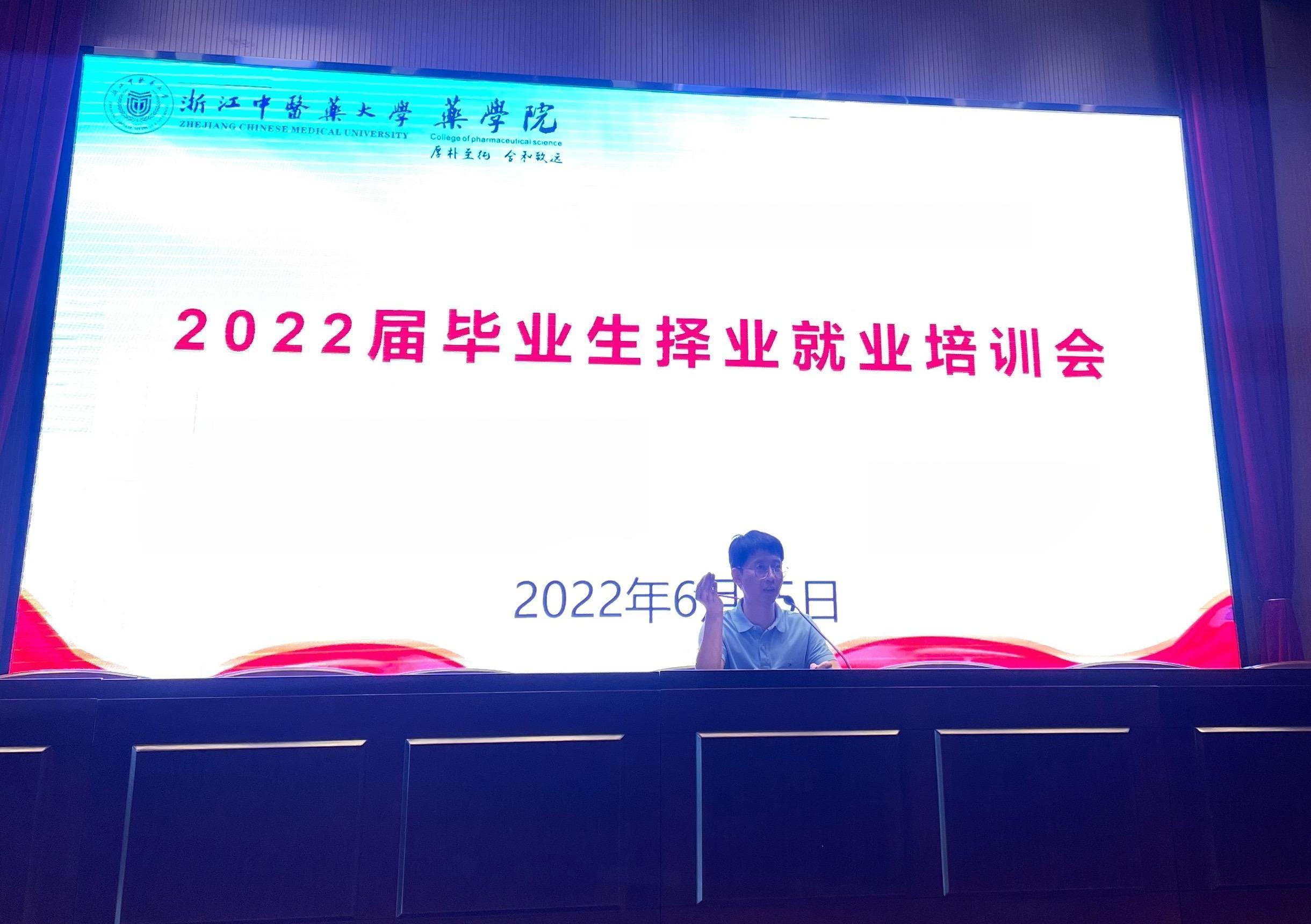 为扎实推进毕业生就业工作,药学院于6月15日下午在富春校区学术报告厅举行了2022届毕业生择业就业培训会。会议由学院党委副书记蒋笑燕主持,学工部副部长王建钟、智飞生物招聘经理何婷婷为暂未就业毕业生进行了择业就业培训。
