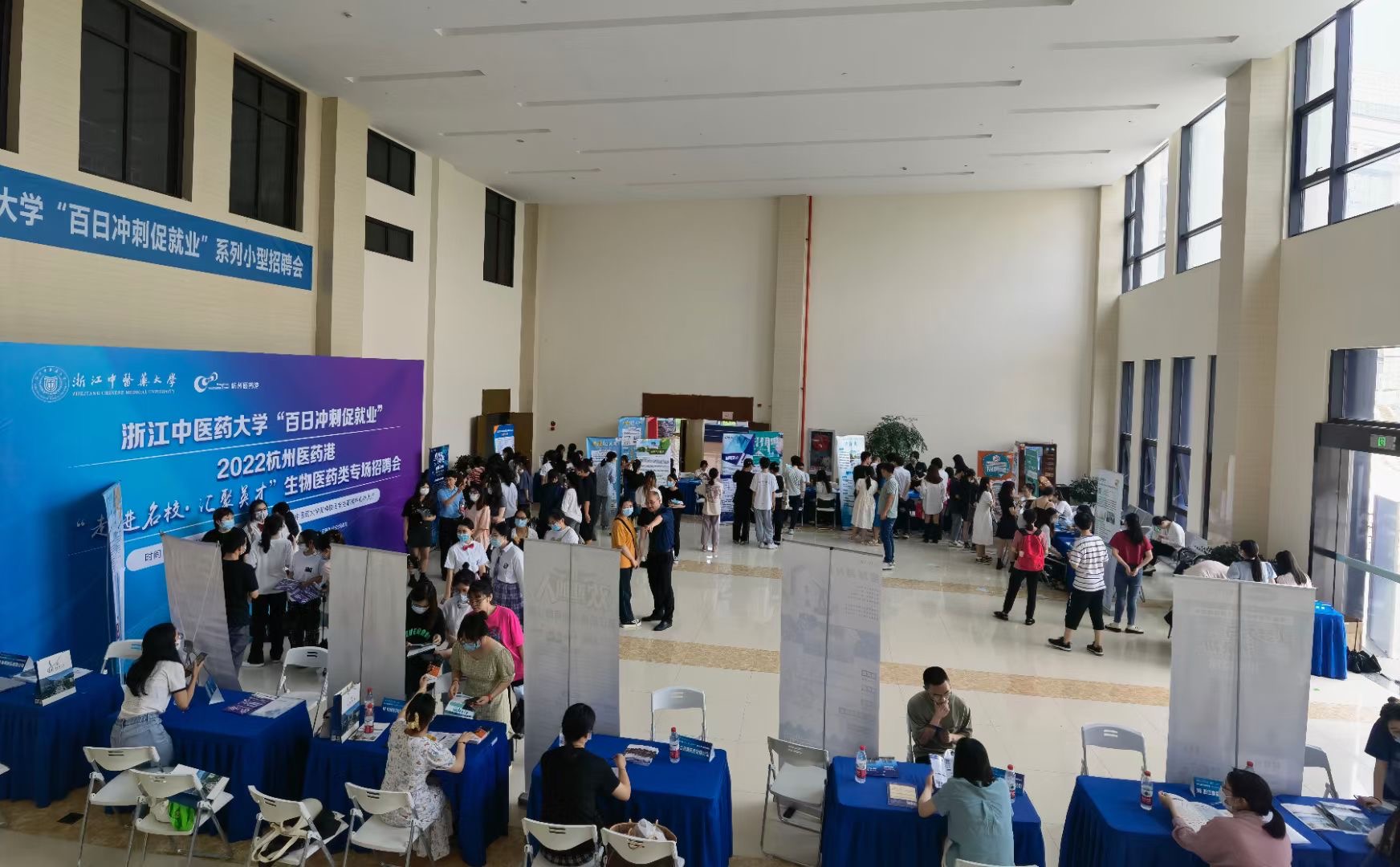 会后,200余位毕业生和高年级学生参加了由学工部牵头组织的“百日冲刺促就业”杭州医药港生物医药类专场招聘会。
