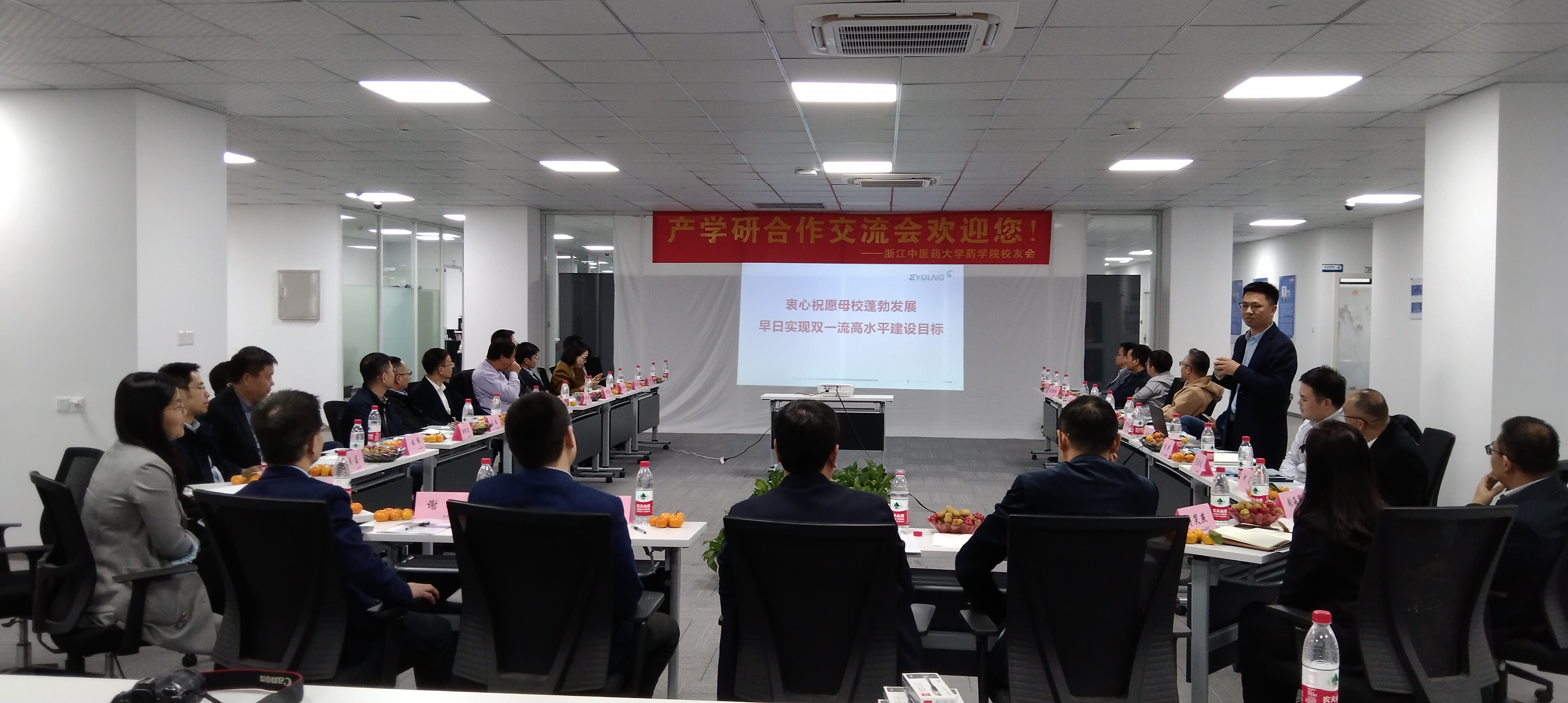 为进一步整合资源,促成校友企业的产学研合作,促进校友与母校、校友与校友之间的沟通交流,2022年10月29日下午,药学院校友会组织召开“联谊话情谊,同心促发展”主题校友产学研合作联谊会。学校副校长吴承亮,科研部、社会合作处(校友办)、药学院等部门领导参加。本次产学研合作联谊会在校友企业浙江鹰旸医药研发有限公司举行。