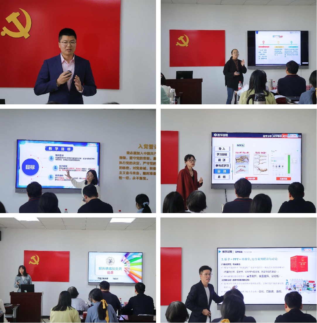 为强化青年教师教学基本功建设,提升青年教师教学水平,药学院于11月10日下午在4A308会议室举办第十六届青年教师教学基本功竞赛。本次竞赛由学院教科办、工会、教师教学发展分中心、青年教师教学学术实践社群共同举办。来自学院各教研室的7位优秀教师参赛。原校工会主席严云良副教授、原现代教育技术中心主任邵加教授、药学院教学副院长谷满仓教授担任教师评委,药学院优秀学生代表担任学生评委。