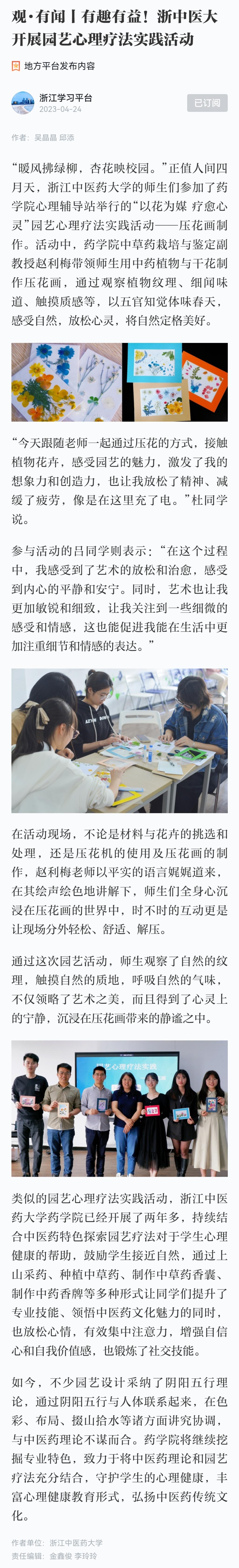 观·有闻丨有趣有益!浙中医大开展园艺心理疗法实践活动