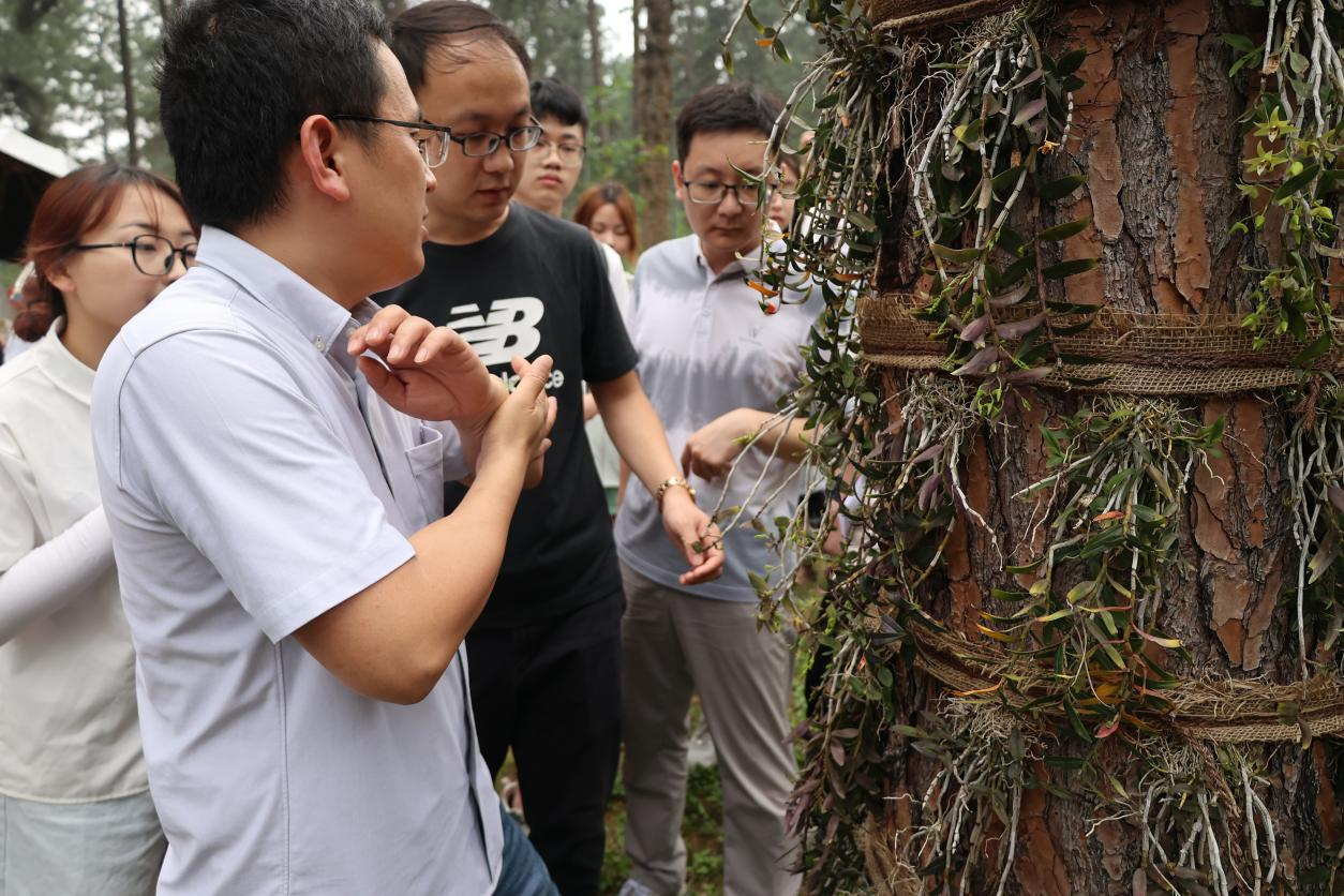 基地指导老师还向同学们介绍了一种新型专利——松果石斛盆栽,利用松果“湿闭干开”的特性创造新颖的栽培方式。不仅赋予石斛深层次的种植内涵,也蕴含着中草药前辈们巨大的智慧,“从实践中来,到实践中去”体现得淋漓尽致。同时大家也从中体悟到中医药发展要与时俱进,敢于质疑敢于创新,才能焕发出中医药独具一格的蓬勃生命力。