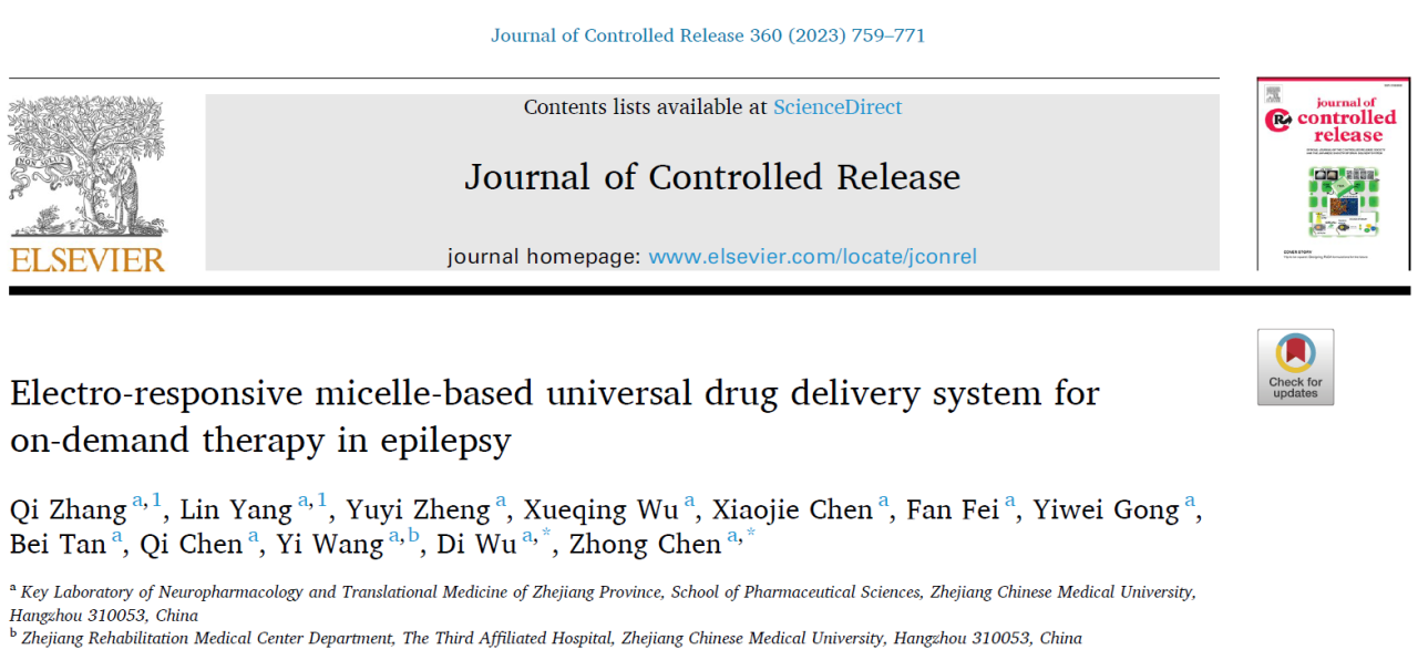 近期,我院陈忠教授团队在癫痫药物治疗的策略研究方面取得新成果,在《Journal of Controlled Release》在线发表了题为“Electro-responsive micelle-based universal drug delivery system for on-demand therapy in epilepsy”的研究论文。该研究利用多学科交叉技术,针对癫痫发作时大脑异常放电的疾病特征和药物治疗中多类型药物递送的需求特点,首次设计了一种电场敏感的适用于多种抗发作药物的普适性胶束纳米递药系统,为癫痫药物按需治疗提供了一种新策略。
