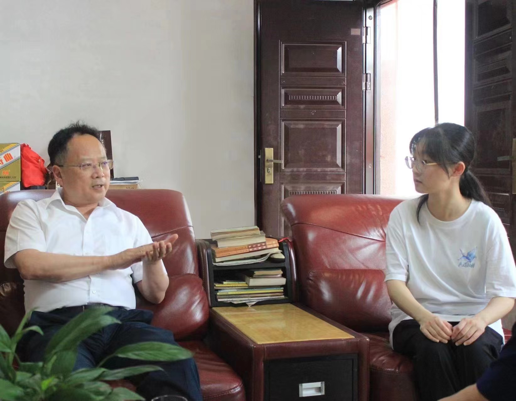 陈忠校长向刘甜同学及家人表示祝贺,详细介绍了学校概况、发展成果、办学特色及中药学(创新实验班)专业培养模式,鼓励刘同学树立远大志向,学好专业知识,努力成长为为国家健康事业作贡献的高素质人才。