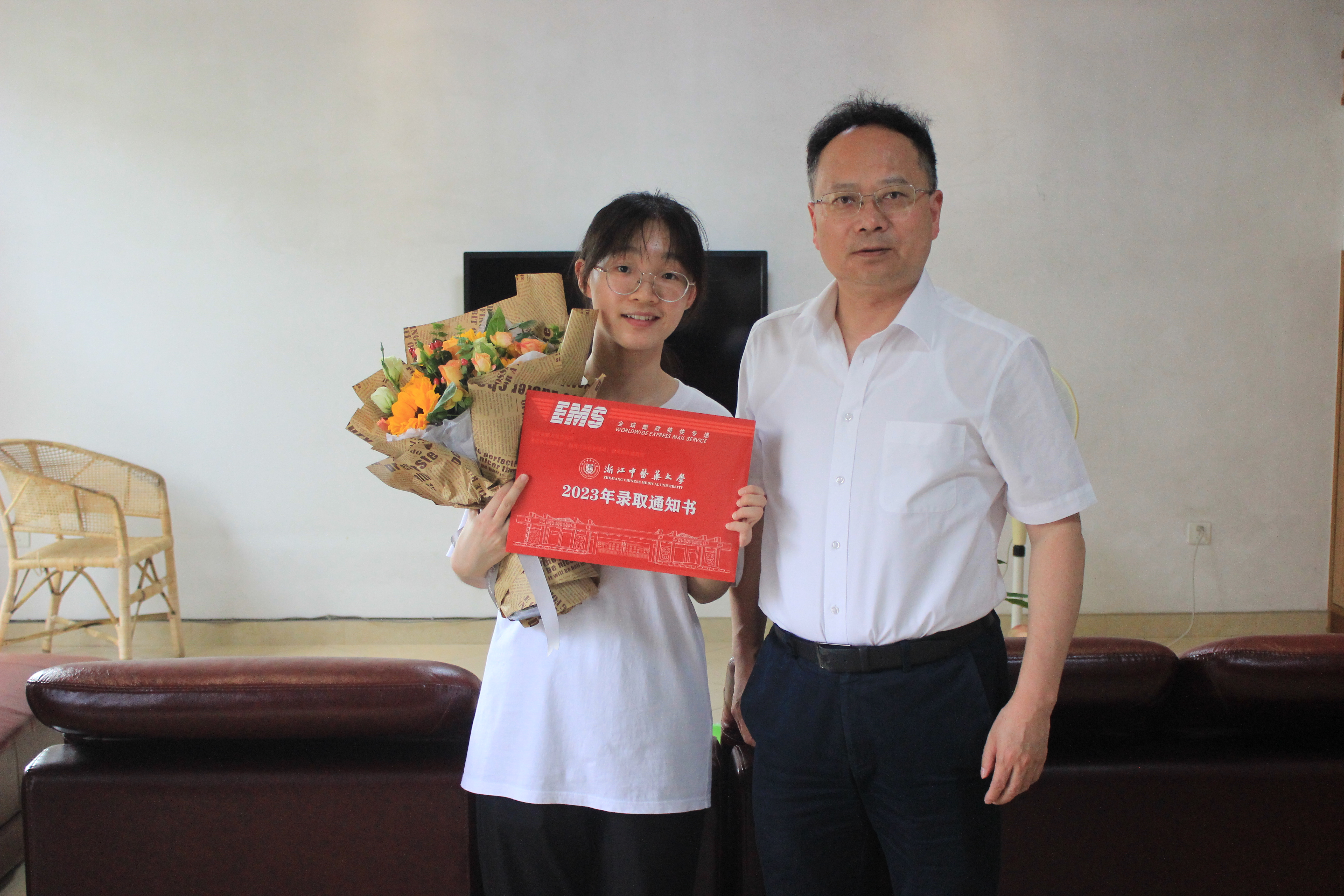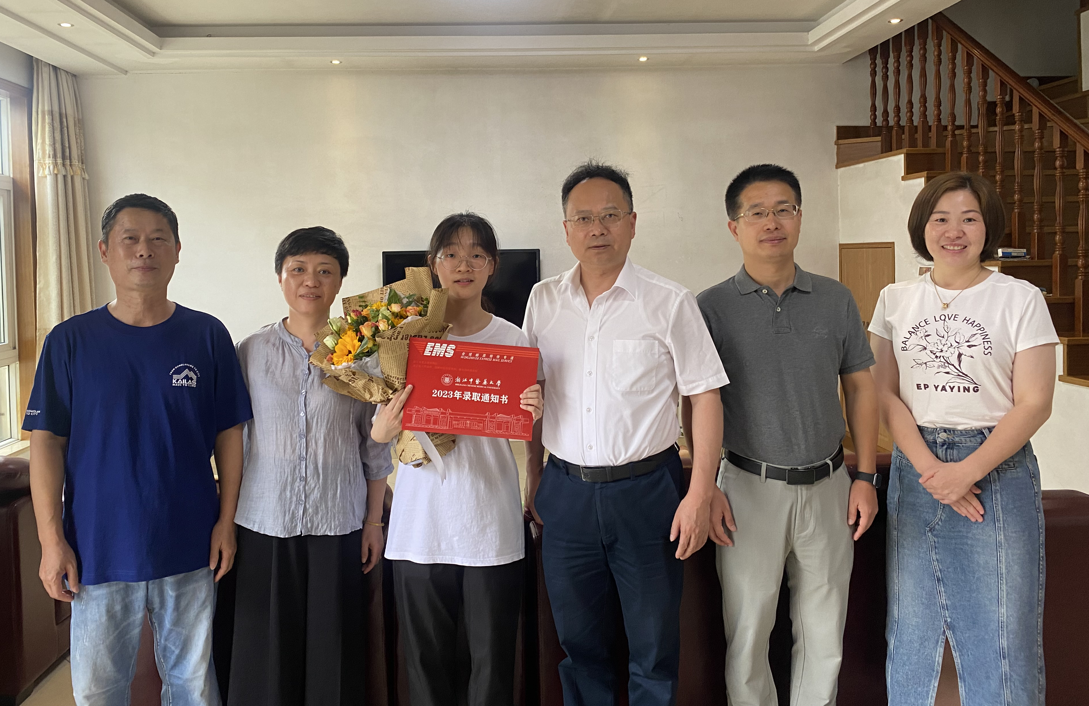 “刘甜同学,恭喜你成为浙江中医药大学药学院中药学创新实验班的首届学生!”7月23日下午,校长陈忠教授前往湖州市德清县向2023级新生刘甜同学亲手送上录取通知书。药学院党委书记谢军,校长办公室副主任、发展规划处副处长刘佳敏陪同。