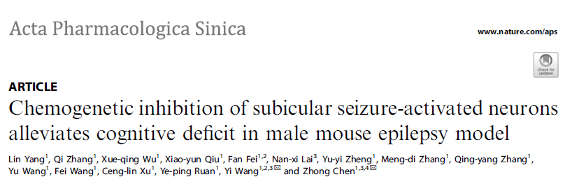 近期,陈忠教授团队在癫痫伴发认知功能障碍的机制研究方面取得新成果,在《Acta Pharmacologica Sinica》(中科院一区top杂志)在线发表了题为“Chemogenetic inhibition of subicular seizure-activated neurons alleviates cognitive deficit in male mouse epilepsy model”的研究论文。该研究使用即早基因驱动的细胞标记技术来特异性标记并调控海马下托“发作激活”的神经元,揭示了海马下托“发作激活”神经元参与癫痫发作及伴发认知功能障碍的作用。