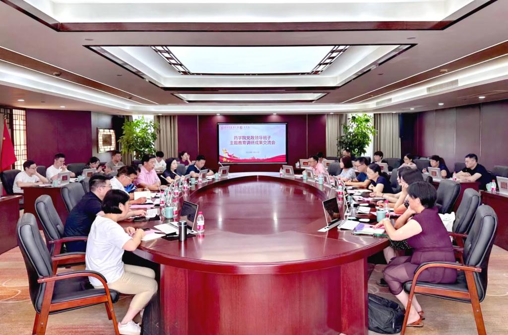 近日,药学院党政领导班子召开学习贯彻习近平新时代中国特色社会主义思想主题教育调研成果交流会。校长陈忠到会指导,药学院党委书记谢军主持会议并讲话,学院领导班子成员、各所室办负责人、党支部书记、民主党派代表等40余人参加会议。
