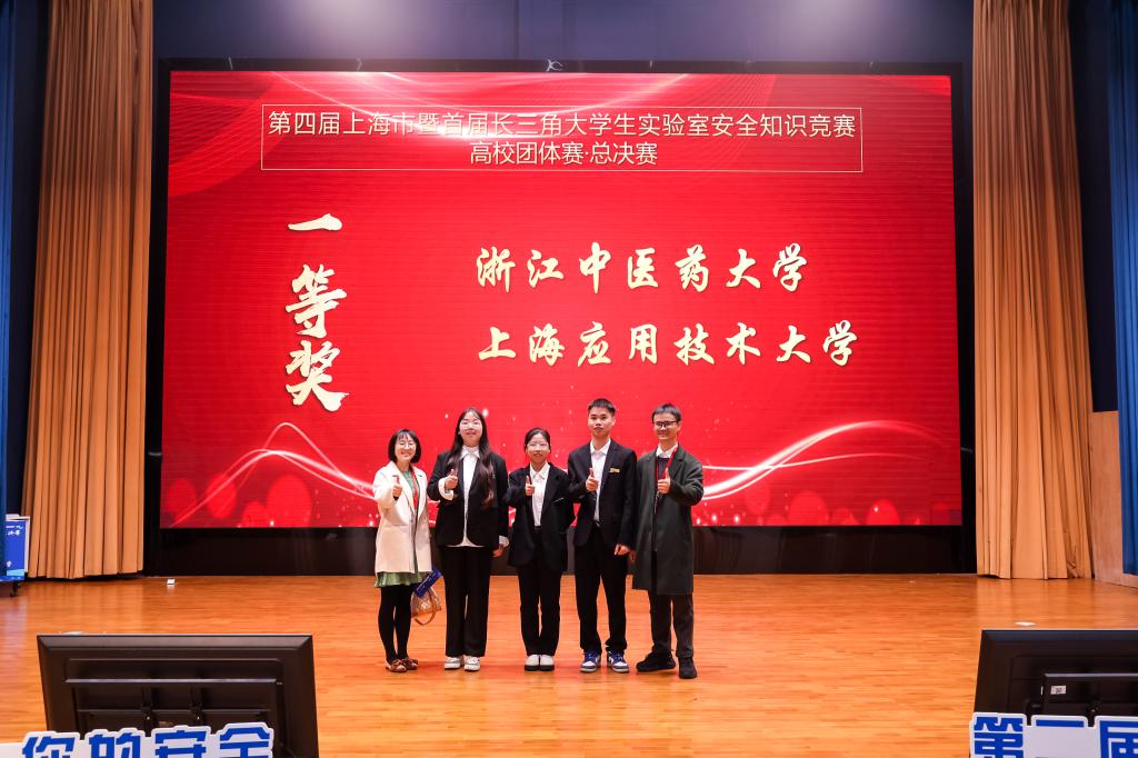 11月21日,上海市教育委员会组织开展的“第四届上海市暨首届长三角大学生实验室安全知识竞赛·总决赛”在上海海洋大学临港校区举行。来自长三角地区的上海、浙江、江苏和安徽的31所高校通过东北、西南区域赛选拔,共12支队伍进入总决赛。我校由药学院2023级硕士研究生周支豪、贺金星和2022级本科生刘燕霞3名同学组成,药学院刘考铧为指导老师的代表队,历经数轮校内选拔、培训,并经上海师范大学西南片区区域赛和上海海洋大学总决赛的激烈角逐后,以总分第二的成绩荣获团体一等奖!