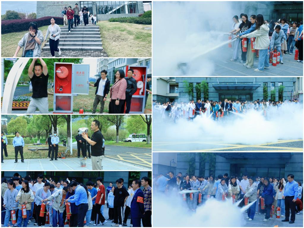 演练在学院大楼内进行,模拟突发火情的紧急状况,工作人员第一时间报警并提醒该楼层所有人员疏散逃生。在场师生就近从各楼层安全通道迅速疏散下楼,在疏散引导员的指挥下按照既定路线有序撤离到疏散地点并清点人数,整个过程井然有序、高效迅速。校区管委会安全保卫科科长马吉对参与师生进行了详细的消防器材使用培训,现场介绍、演示、指导各类消防器材使用方法和规范。师生员工踊跃学习操作如何正确使用灭火器等消防器材,提升了遇险自救的实战能力。