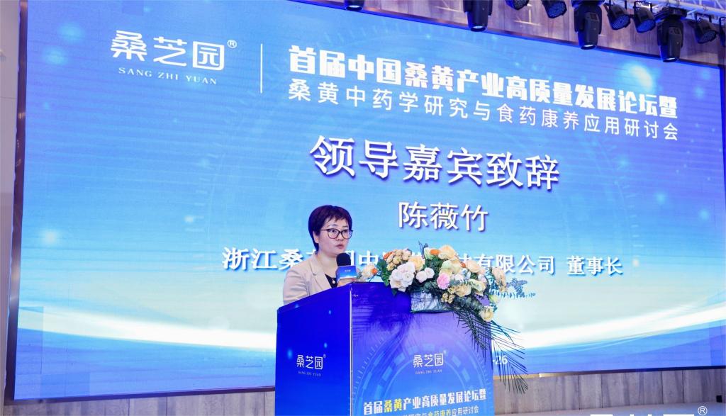 浙江桑芝园中医药科技有限公司董事长陈薇竹在致辞中表示,希望今后能够加强和浙江中医药大学等高校、科研院所的合作,共建桑黄产学研合作平台,促进桑黄的科学研究和产业发展。
