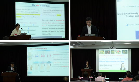 开幕式结束后,中国科学院新疆生态与地理研究所潘伯荣研究员,中国植物学会民族植物学分会副理事长、中央民族大学龙春林教授,韩国庆熙大学Deok-Chun Yang(梁德春)教授,老挝卫生部传统医药研究院Thongsavanh Sengkongdala(通沙万)教授,马来西亚太医院联合诊所Boon Khai Teoh(张文开)教授,日本名古屋市立大学Toshiaki Makino(牧野利明)教授,泰国清迈大学Sirisa-ard Panee(丘玉霞)副教授,马来西亚思特雅大学Chiah Shean Teo(张家玄)教授,马来西亚拉曼大学Kian Keong Te(郑建强)副教授,浙江康恩贝制药股份有限公司药品研发中心总经理胡江宁正高级工程师,印度尼西亚国家研究创新署Wawan Sujarwo(瓦万)教授,内江师范学院Fardous Mohammad Safiul Azam(阿扎姆)教授,泰国玛哈沙拉堪大学Wanida Caichompoo(瓦妮达)副教授和我院院长秦路平教授等14位专家作大会报告。