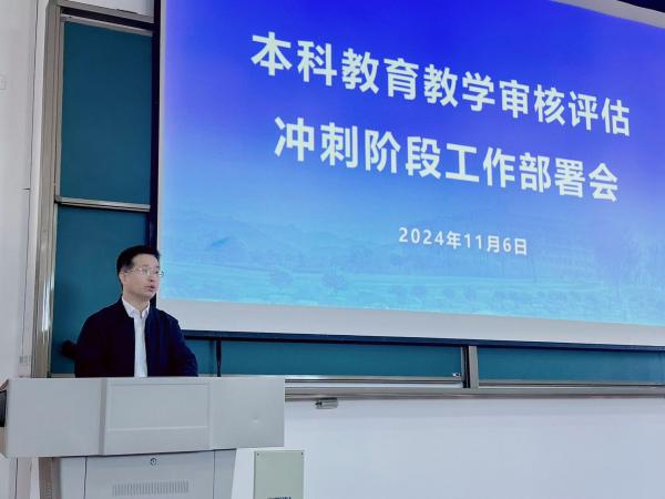 2024年11月6日下午,药学院召开了全院教职工大会,部署本科教育教学审核评估冲刺阶段工作重点工作。会议由学院党委书记谢军主持。