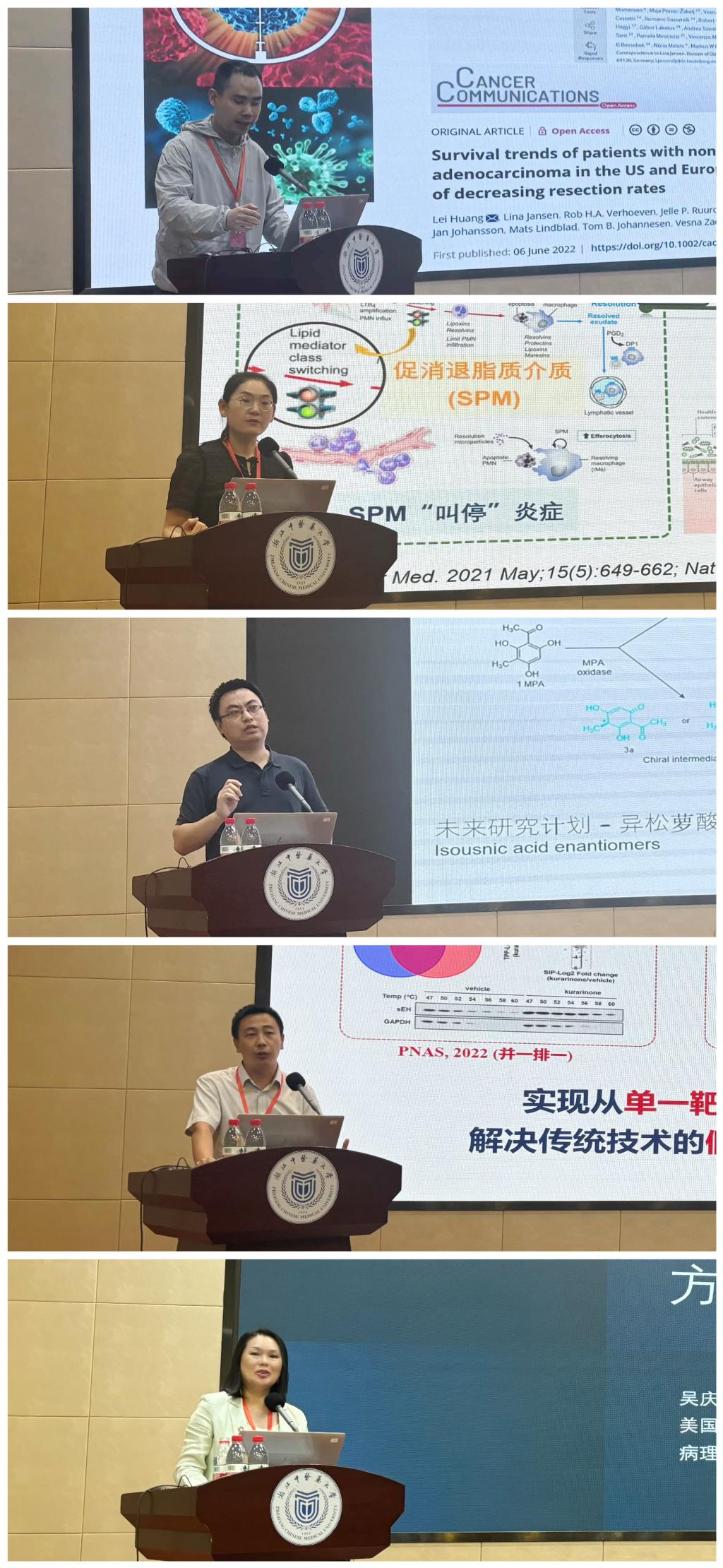 会上,来自海军军医大学的黄雷副研究员围绕“恶性实体肿瘤治疗进展”,分享了该领域的前沿动态与研究成果。中山大学的于世慧副教授聚焦“抗耐药铜绿假单胞菌纳米递药系统的研究”,阐述了纳米递药系统在对抗耐药菌方面的创新探索。冰岛大学的徐卯年博士针对“地衣中松萝酸异构体的手性生物学与在民族药学中的应用”展开讲解,揭示了手性生物学特性与民族药学应用的关联。天津中医药大学的孙成鹏教授带来“复合式靶标垂钓技术体系构建与中药作用靶标发现”的研究,介绍了技术体系构建及靶标发现的新进展。美国奥斯纳医疗健康系统的吴庆莉研究员则就“临床检验实验室标准化与一种新型结核病快速检测方法的验证”进行汇报,展现了临床检验标准化及结核病检测的新方法。