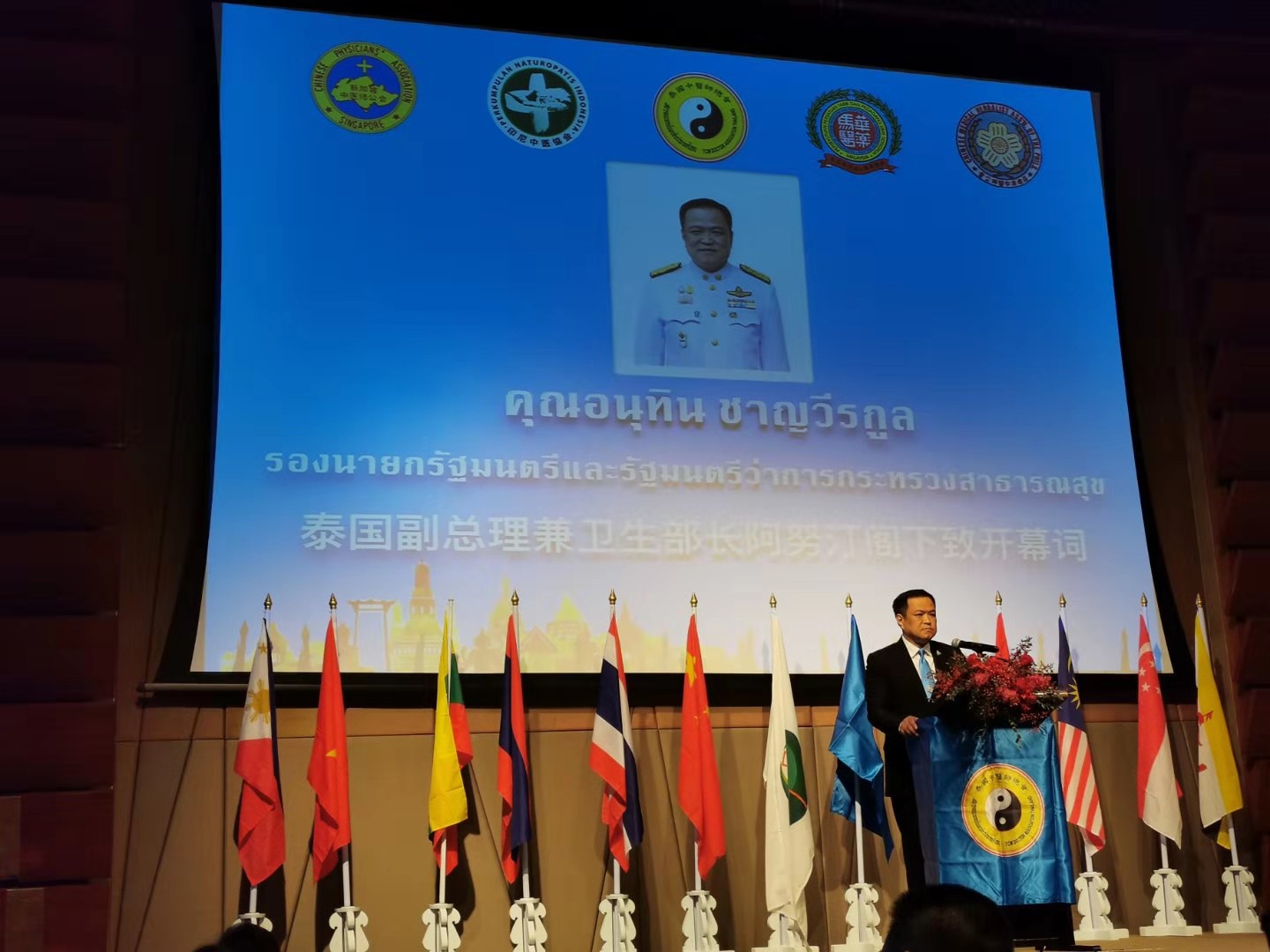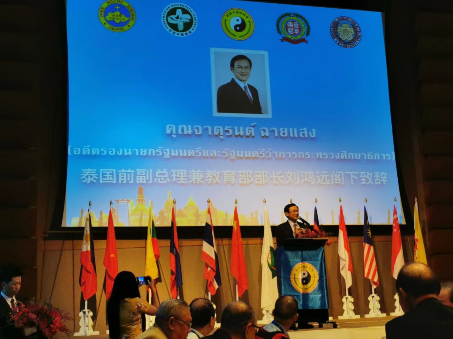 2019年8月23日至25日,第十二届亚细安中医药学术大会暨中医临床研究国际合作中心成立大会在泰国曼谷隆重召开。大会由泰国中医师总会承办,泰国卫生部、中国驻泰大使馆、世界中医药学会联合会支持。泰国副总理兼卫生部长阿努汀、泰国前副总理兼教育部长刘鸿远、中国驻泰大使馆文化参赞常禹萌、世界中医药学会联合会副秘书长徐春波和国际联络部主任王晶、泰国中医师总会会长林丹乾、泰国中华总商会主席陈振治、新加坡中医师公会会长赵英杰等出席大会并致辞。大会围绕“传承与创新、发展中医药、健康全人类”主题,以发挥中医药优势,提高临床疗效和医疗保健能力进行热烈研讨,为打造人类健康命运共同体而努力。