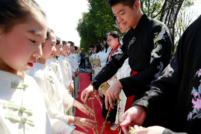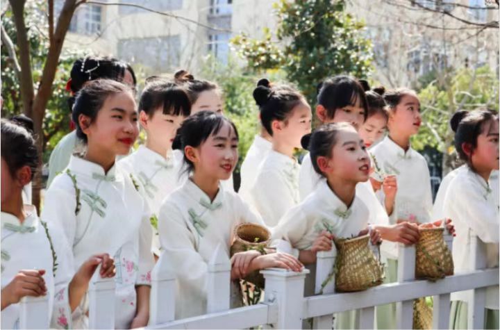 活动现场,身着汉服的“药博士”们将盛满中草药种苗和种子的小背篓递给小学生们,向他们介绍篓中本草的名字、功效和特征,并帮他们将竹篓背至肩上,每个孩子脸上洋溢出喜悦的笑容。