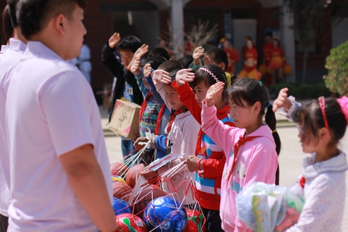 捐赠仪式结束后,双方举办了精彩纷呈的联欢活动。我院学生的动感表演,向中心完小的全体师生展现了体育的无限魅力。铁佛中心完小的小同学们也准备了合唱、舞蹈等节目,表达了对我院师生的衷心感谢。