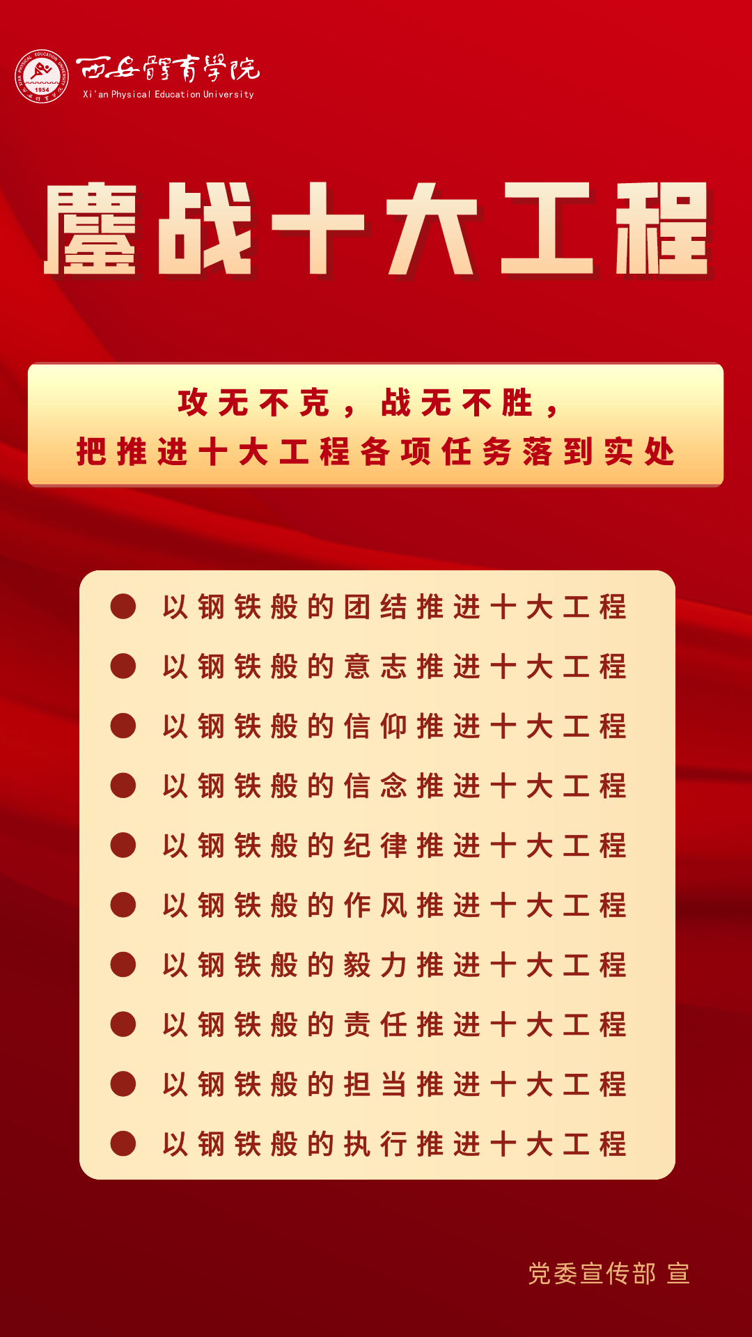 今起,将以专栏形式推出“图说鏖战”系列宣传海报,将“十大改革发展工程”相关会议的主要会议精神和重点内容进行摘录报道,以供师生员工学习交流。