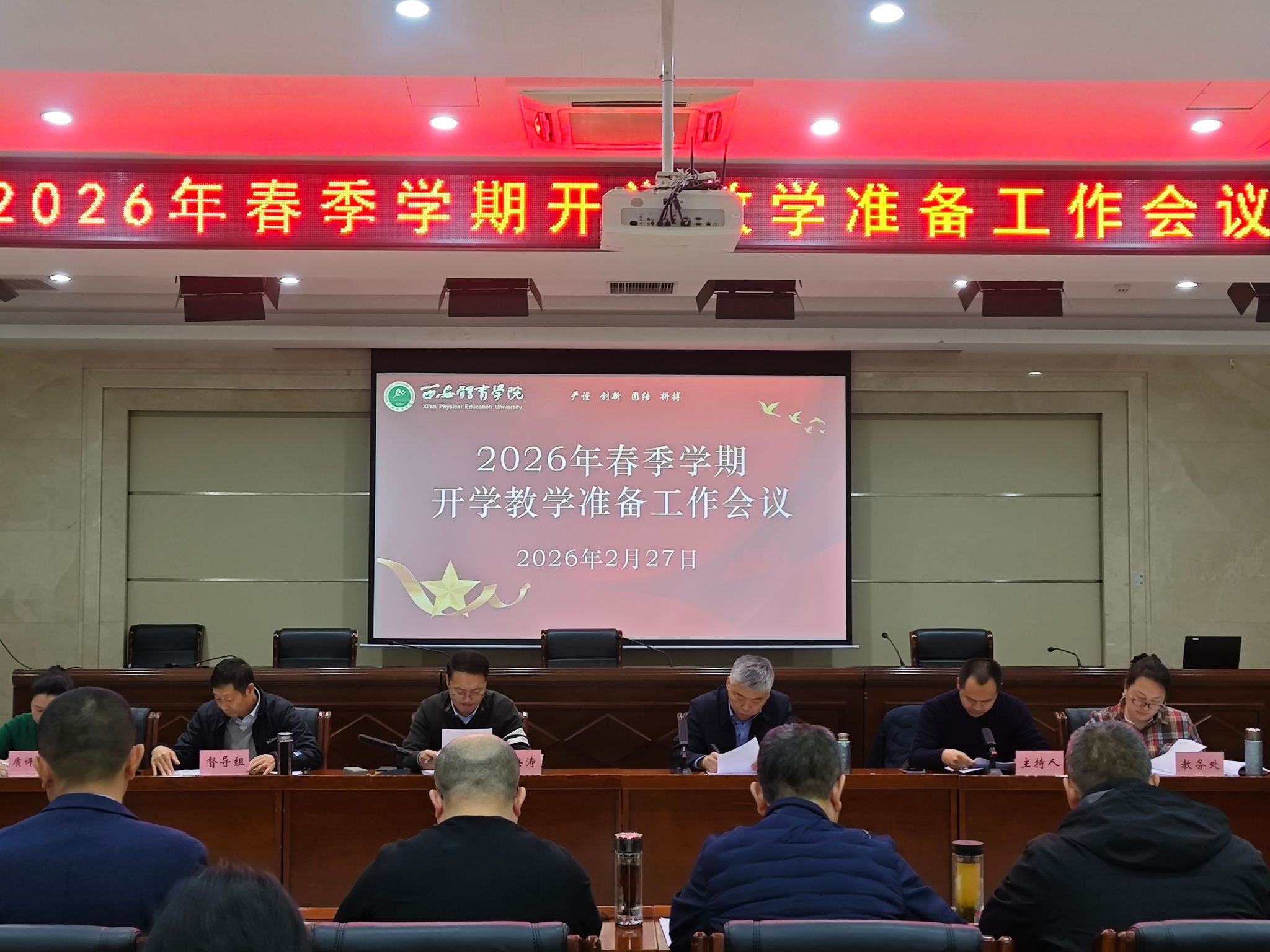 本网讯 2月27日,我校在含光校区召开2026年春季学期开学教学准备工作会议。党委副书记马海涛、副校长张葆欣出席,各职能部门负责人、二级学院院长、分管教学工作的副院长、教学秘书及教务处全体人员参加会议。