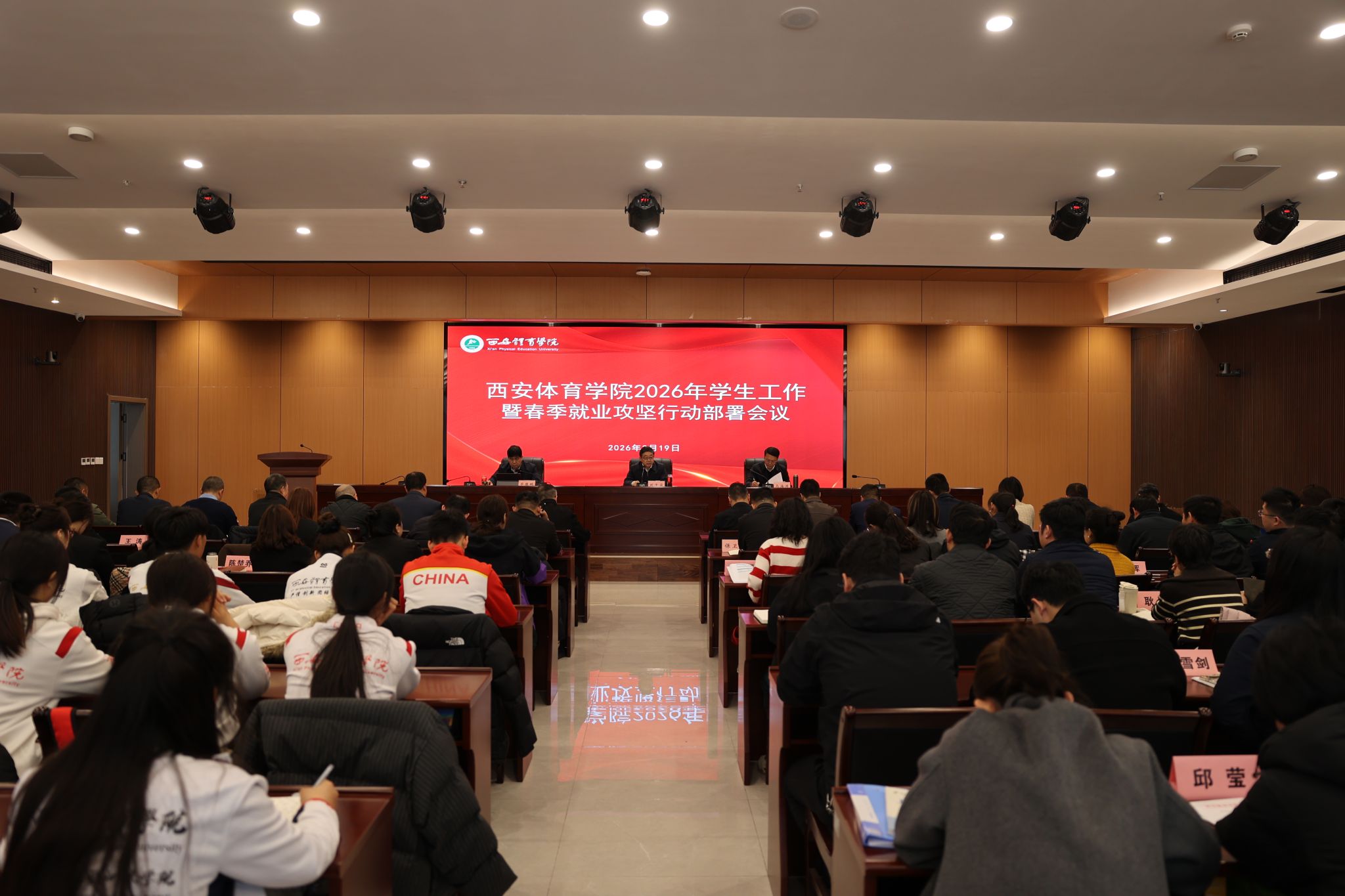 刘子实对做好今年学生工作及毕业生就业工作提出三点要求:一要提高政治站位,紧扣发展大局,深刻把握学工与就业工作的时代使命。要把握体育事业高质量发展黄金期和政策机遇,将体育精神、红色基因融入育人全过程,构建“以生为本”的具有西体特色“三全育人”体系,优化“招生-培养-就业”人才培养模式,拓宽就业渠道,提高就业质量,培养服务国家战略和区域发展的复合型体育人才;二要聚焦核心任务,强化实干担当,推动学工与就业工作提质增效。以“强特色”打造体育思政、实践就业、竞技育人品牌;以“补短板”破解人才培养与社会需求、就业指导精准度、特殊群体帮扶等方面问题;以“创一流”构建一流学工体系、就业服务机制和育人实效,为学科专业建设和博士点申报提供坚实支撑;三要压实工作责任,凝聚工作合力,确保各项任务落地见效。全体教职工要强化政治自觉、责任分工和使命担当,形成“校院联动、部门协同、全员参与”的工作格局,以“起步即冲刺”的姿态攻坚克难,为学校高质量发展和“十五五”目标实现贡献力量。希望西体学子牢记使命担当,勤学苦练,提高综合素养,在强国建设广阔天地中贡献青春担当。