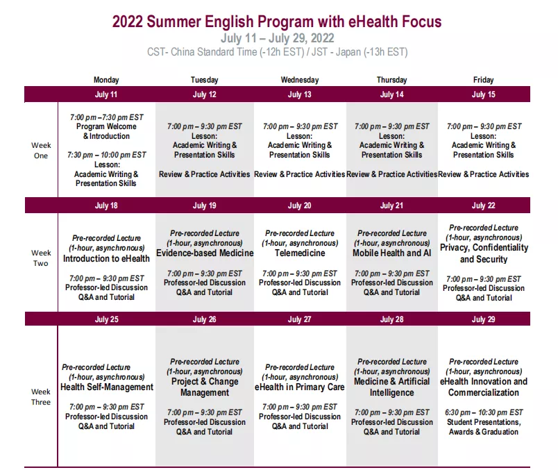 由于医疗保健的飞速发展,对于有志在医疗卫生专业发展同学来说,掌握电子医疗工具的实用知识至关重要。本暑期在线电子医疗课程将向学生介绍许多电子医疗工具,这些工具会支持他们在未来事业中的发展。课程第一周为专业英语强化课,帮助学生作好语言准备以便更有效地参与电子医疗教学活动。