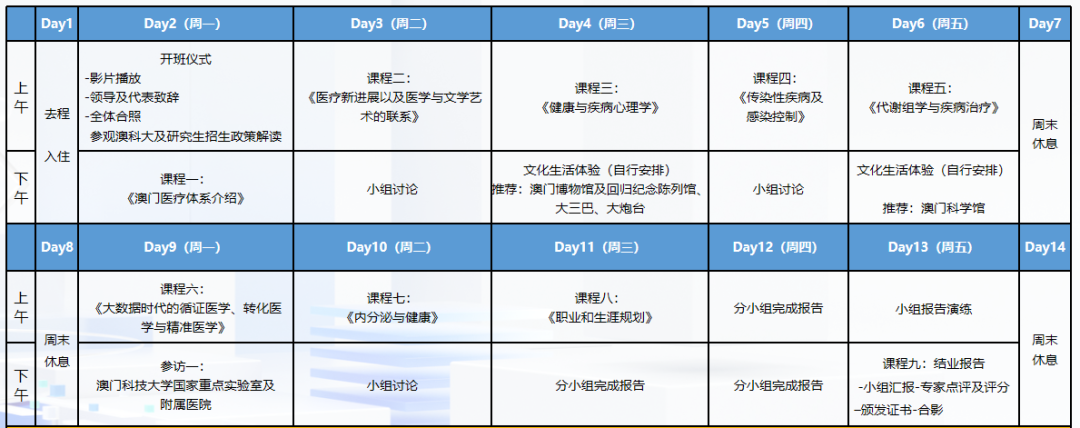 注:部分课程可能会有调整,具体行程以实际为准