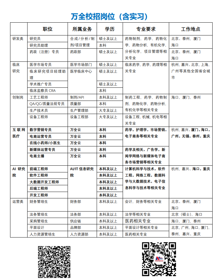 万全医药控股集团校招(含实习)