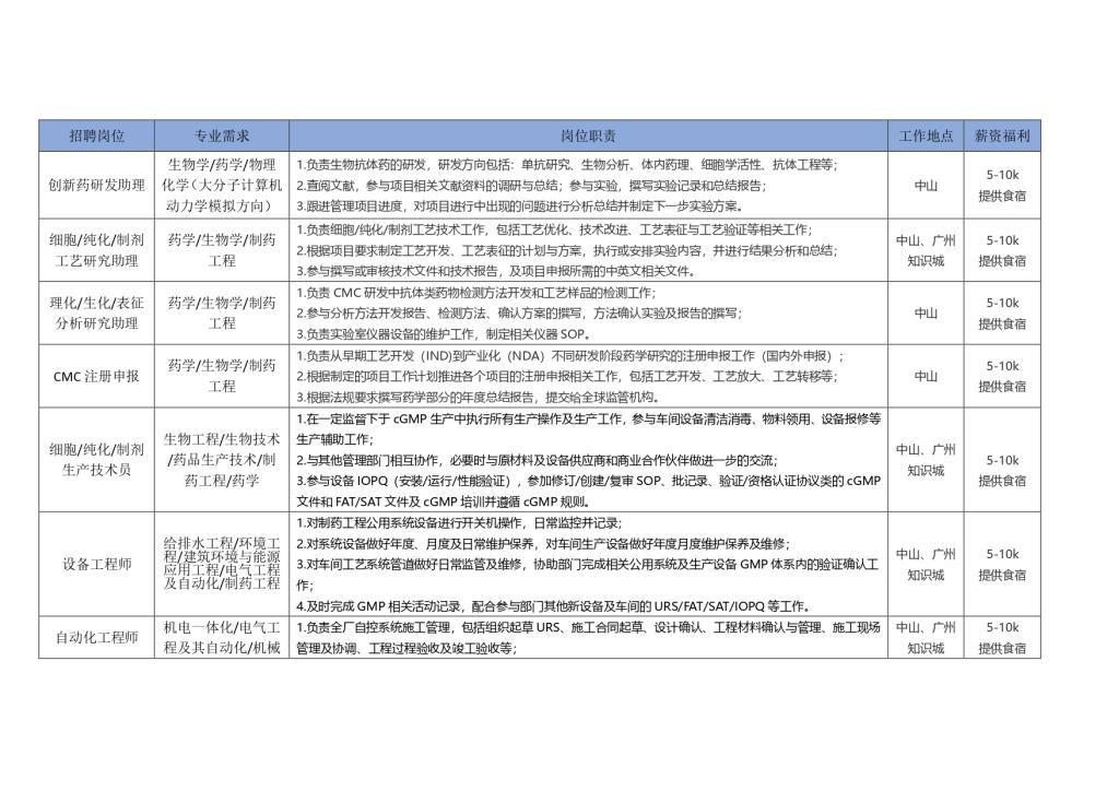 中山康方生物医药有限公司招聘信息