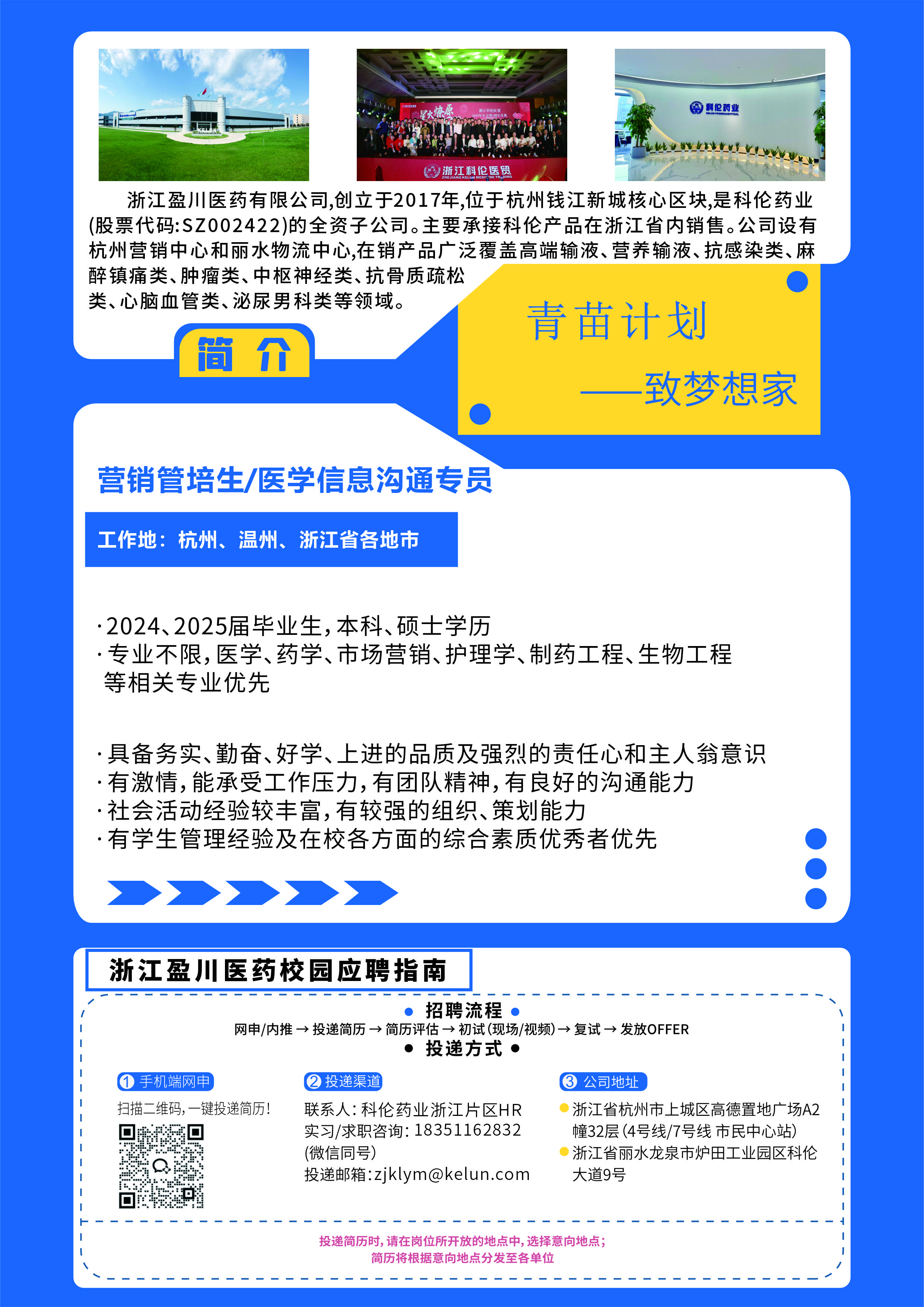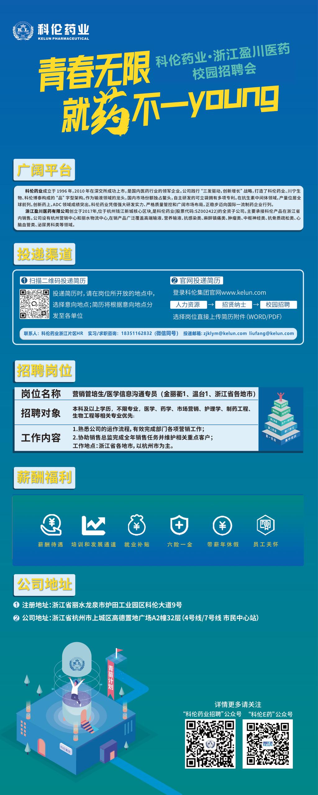 3月15日参加校招,展位号【193】,诚邀优秀学子加入,岗位涵盖浙江省内【营销管培生】、【医学信息沟通专员】等,同时带来【科伦药业】各子分公司岗位,期待您的加入!!