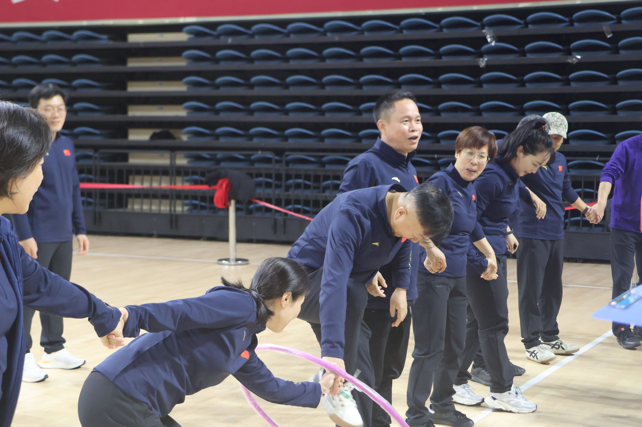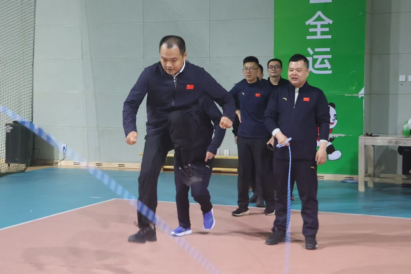 赛场上,教职工们身着统一服装,精神饱满地投入到各项比赛中,充分展示了积极向上的精神风貌,加油声、欢呼声此起彼伏,现场氛围热烈而欢快。
