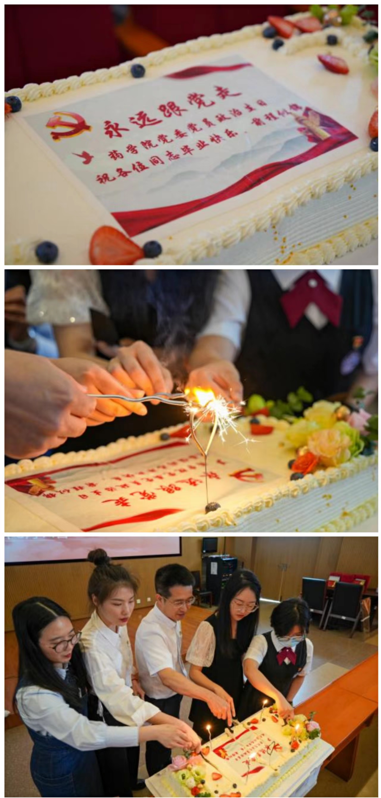 活动最后,谢军书记及四位学生党员代表与大家共同分享了政治生日蛋糕。充满仪式感的“政治生日”,使学生党员充分感受到党组织关心和关爱,增强了归宿感、荣誉感和使命感。药学院党委将以此次活动为契机,把教育管理党员的活动融入生活、融入日常,引导广大党员进一步强化身份意识、宗旨意识和责任意识,切实发挥先锋模范作用,不忘初心、砥砺前行,以优异成绩迎接党的二十大胜利召开。