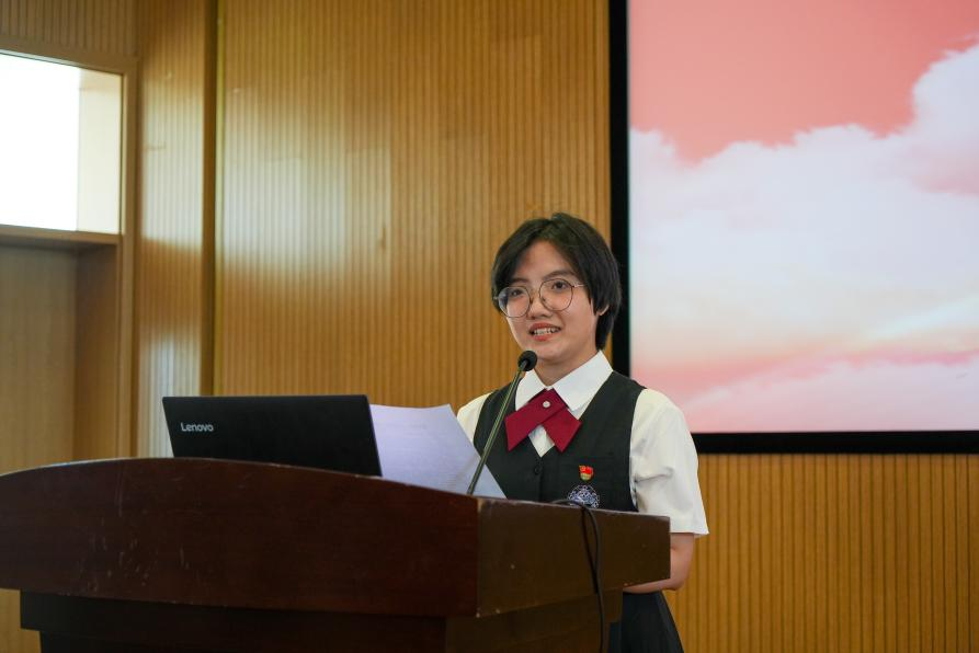 活动伊始,学生党员代表陈雅洁同志重温入党志愿,宣读入党志愿书。三位学生党员代表李固梓、吴珊珊、余红霞分享入党感悟,追忆入党初心。