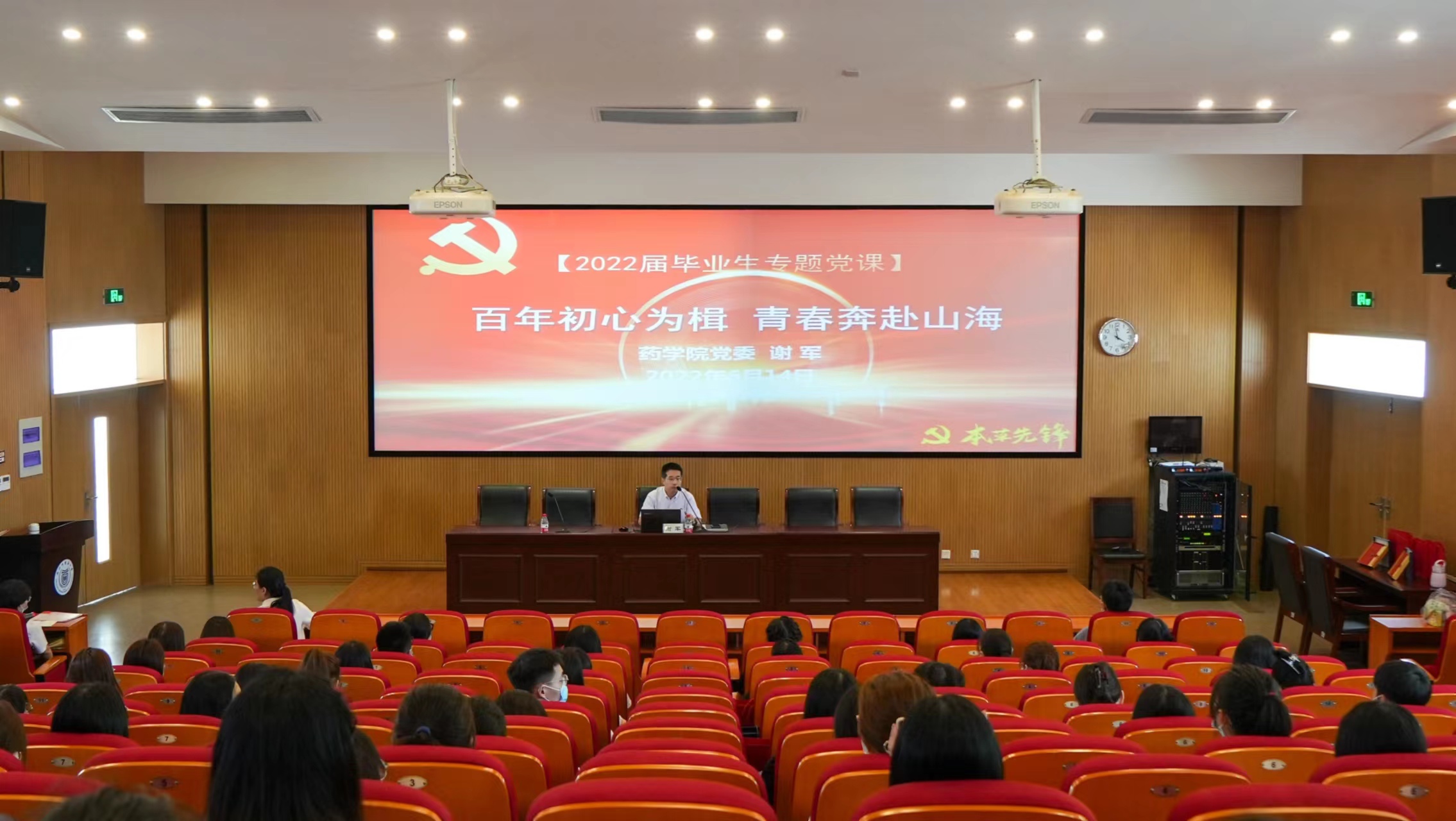 6月14日,药学院在富春校区B101举行2022届毕业生党员教育大会,药学院党委书记谢军为即将踏出校园,迈上新征程的170余名毕业生党员作专题报告。