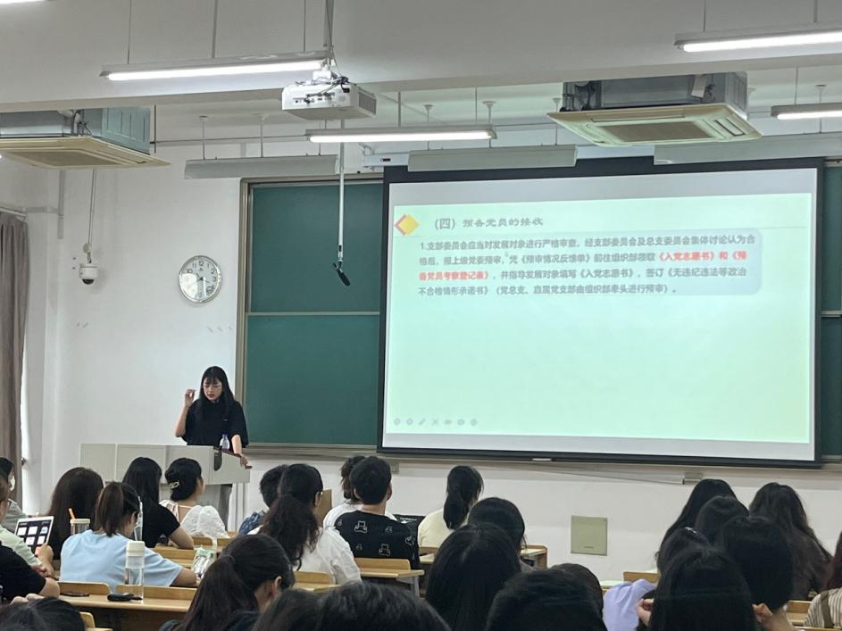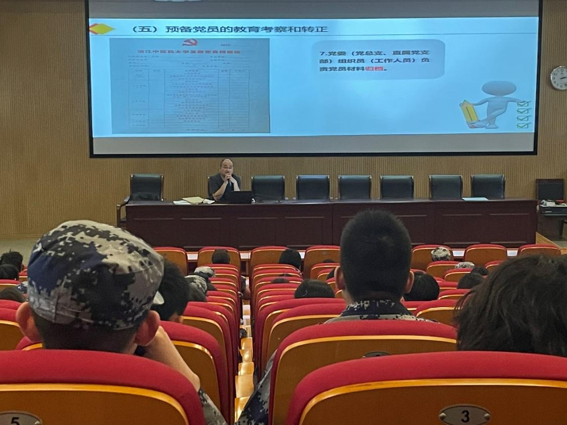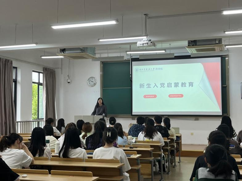 精心设计,全面部署,深化教育力度。学院统一制作了入党启蒙教育课件及讲稿,各学生支部书记深入新生班级组织开展新生入党启蒙教育6场次,参与新生587人次,做到新生入党启蒙教育全覆盖、无遗漏。药学院本科生第三党支部书记鲁益彪通过“什么是入党动机”以及“入党意味着什么”这两个问题,引发新生认识和思考正确的入党动机。药学院本科生第四党支部书记王越颐就新生最关心的“如何积极争取加入党组织”这一问题从思想,学习,生活,社会工作等四方面进行解答,引导学生以实际行动争取早日加入党组织。药学院本科生第六党支部书记李君彦重点讲解了发展党员的流程和重点,强调了入党申请书书写规范。