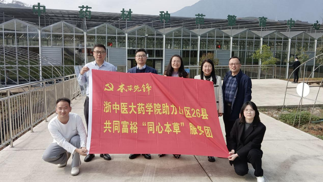 近年来,药学院认真贯彻落实习近平总书记关于共同富裕的重要论述精神,以《浙江高质量发展建设共同富裕示范区实施方案》、《浙江省山区26县跨越式高质量发展实施方案》以及《浙江中医药大学服务山区26县共同富裕行动计划》为遵循,充分发挥“本草先锋”党员群体模范带头作用,组建助力山区26县共同富裕的“同心本草”服务团,通过党员科技特派员及团队下派,技术干部交流互派、山区县技术转移中心建设、地方研究院建设等方式,将先进的理念,实用的技术,丰富的资源带到山区县。他们努力做好服务群众的“贴心人”,中药扶贫的“引路人”,科技创新的“带头人”,以共产党员的本色,让科技之花在绿水青山间美丽绽放,让中草药产业成为山区县脱贫的“致富良方”。