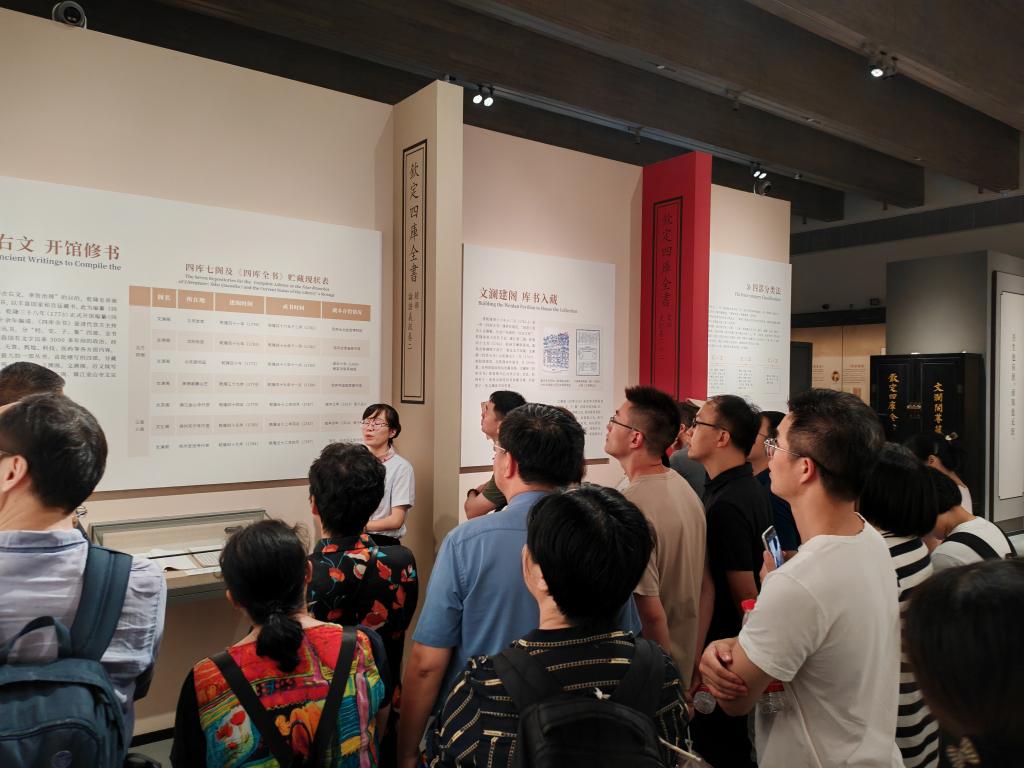 自从国家版本馆杭州分馆对外接待参观以来,就迅速成为杭州市的网红打卡之地。它的建筑设计围绕“宋代园林神韵的当代藏书建筑”展开,包括主书房、南书房、文润阁、山体库房、附属用房等共计13个单体。在现场解说员的带领下,药学院教职工参观了“潮起之江——‘重要窗口’主题版本展”、“文献之邦——江南版本文化概览”展、“盛世浙学——浙江文化研究工程成果展”、“千古风流——浙江历史文化名人展”四个主题展览,大家亲眼目睹了承载厚重历史文化的古籍《四库全书》,细细研读了馆藏的浙江廉洁家教家风版本,感受到了版本背后的中华文化生命力和家风家训对浙江人精神世界的影响。