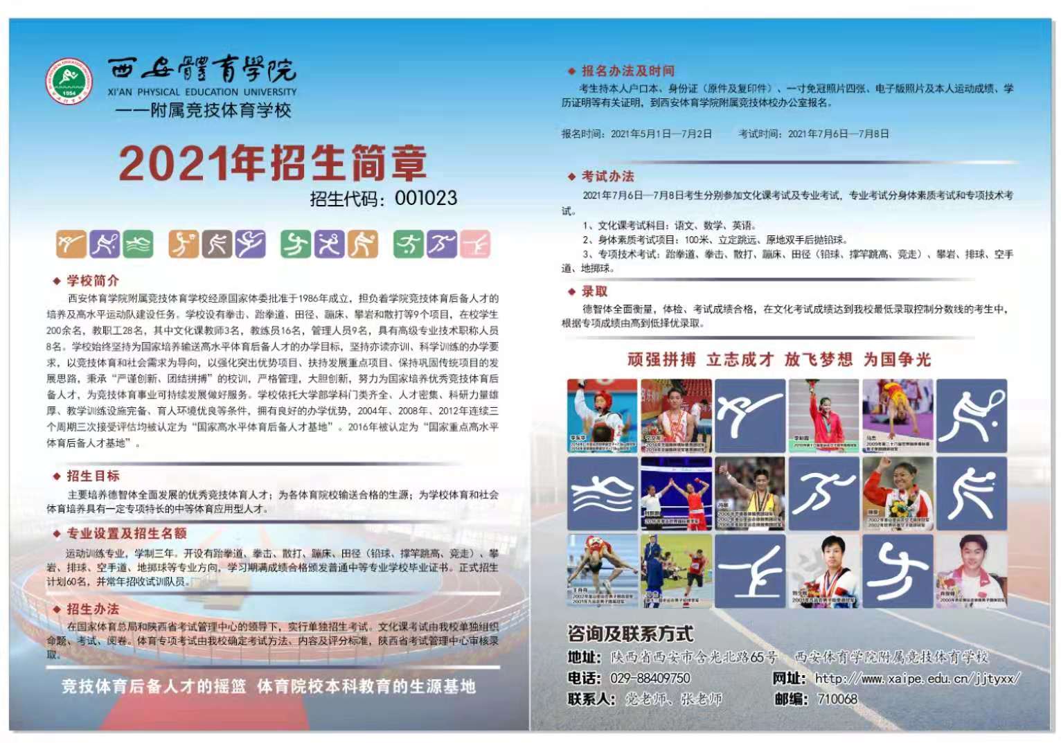 西安体育学院附属竞技体育学校2021年招生简章