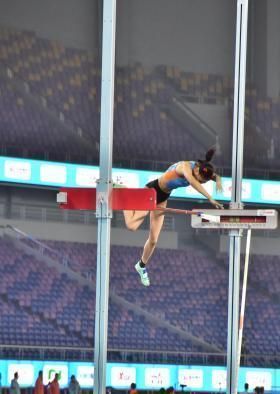 本网讯 2024年4月7日在浙江杭州,我校撑竿跳高队参加了全国田径大奖 赛(第二站),其中我校女子撑竿跳高运动员牛春格以4米50的成绩获得第一。此次比赛女子撑竿跳高共15名参赛运动员,牛春格在这次比赛中发挥出正常训练水平,而且她是14步助跑,步数比较短,能跳出这样的成绩非常不错。